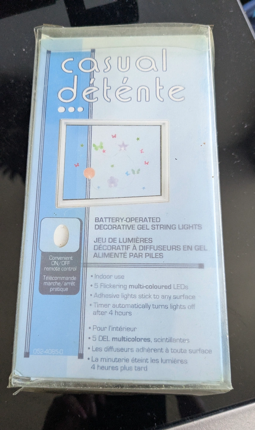 Pick up only please. CHECK THE MAP FOR LOCATION BELOW 👇🗺️ New in box. Battery-operated decorative gel string lights. Five flickering multi-coloured LEDs. Adhesive lights stick to any surface. Timer automatically turns lights off after four hours. Requires 3x AA Batteries (not included) #Freecycle Smoke Free and Pet Free home
