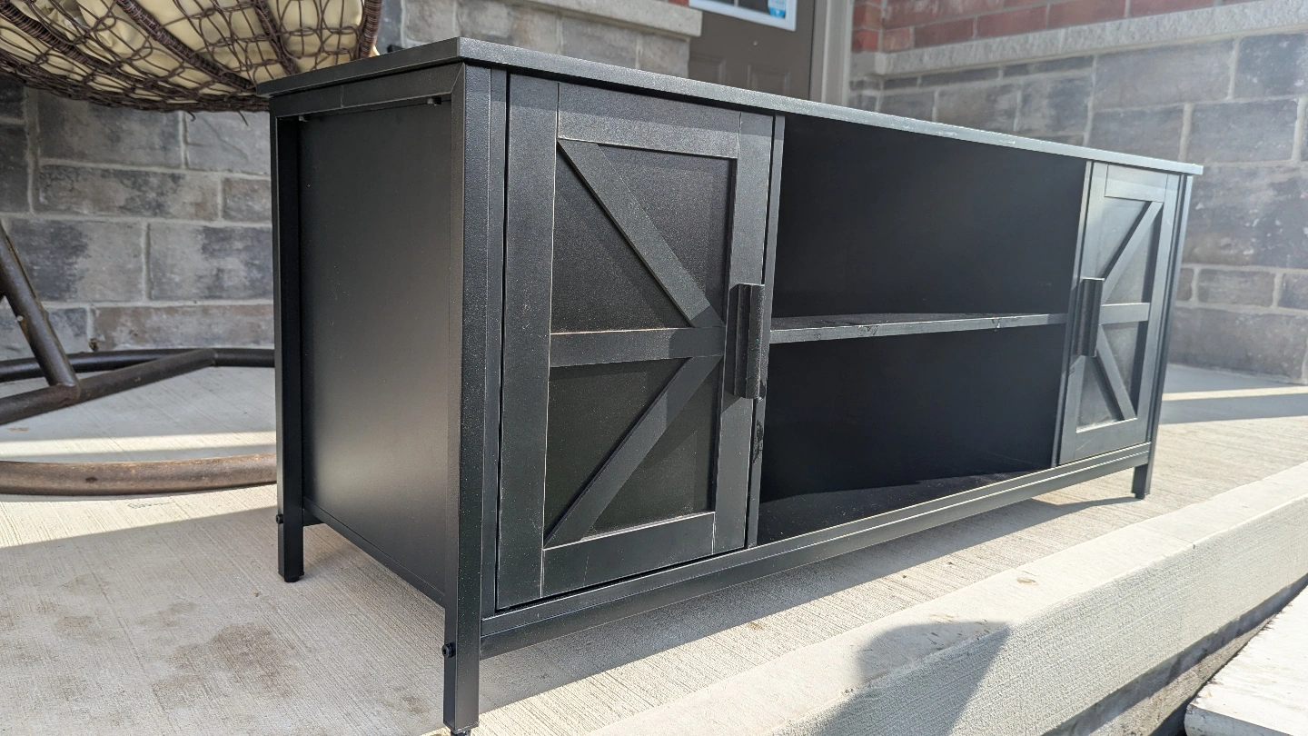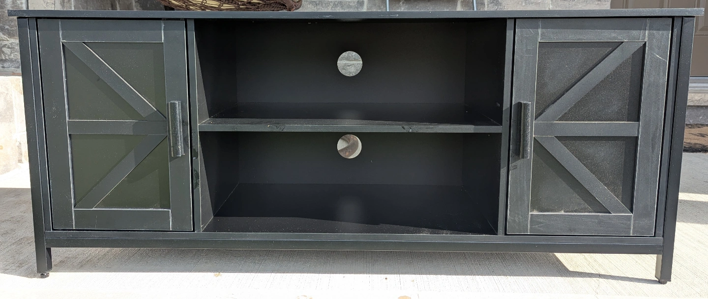 This is a brand new TV stand that can support up to 55" TV. I have assembled it and put it together, saving you the time and energy. Located at Courtice (East of Oshawa). If you see the ad, it is available. Happy to entertain a reasonable offer. Get more storage space with an open center shelf and two large capacity barn door storage cabinets on both sides, plus two cable holes on the back to collect messy wires. Add stylish charm to your living room or any space with this practical 47.2 inch table unit that won't take up too much space. Item Dimensions 120 x 40 x 50 Centimetres Can deliver if within the vicinity. Check profile for more listings.