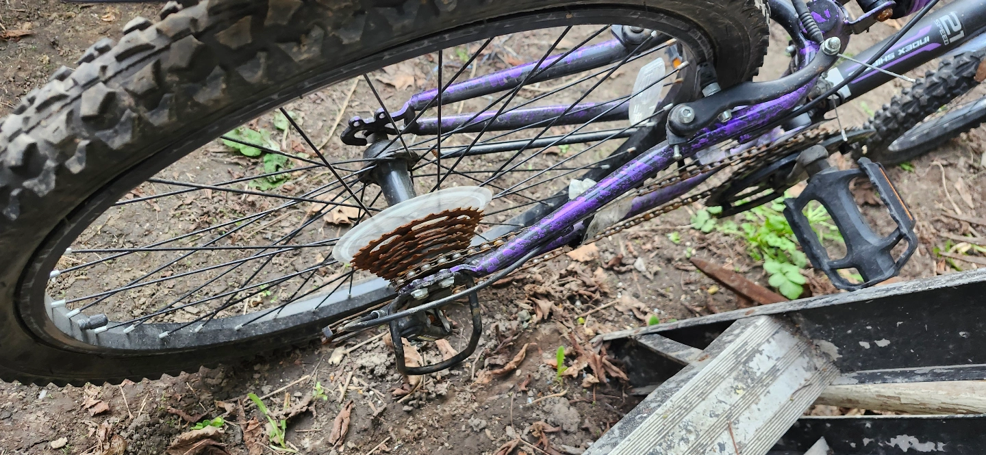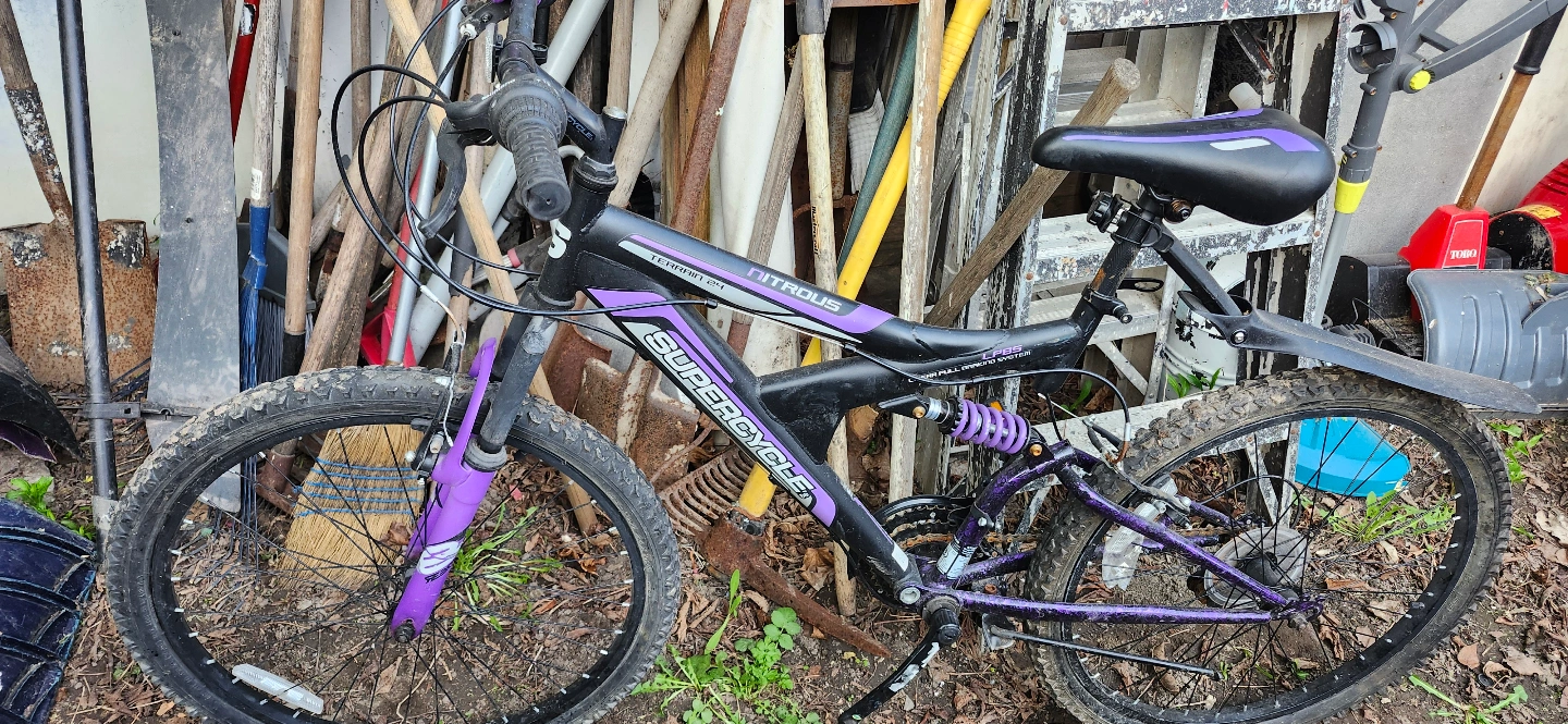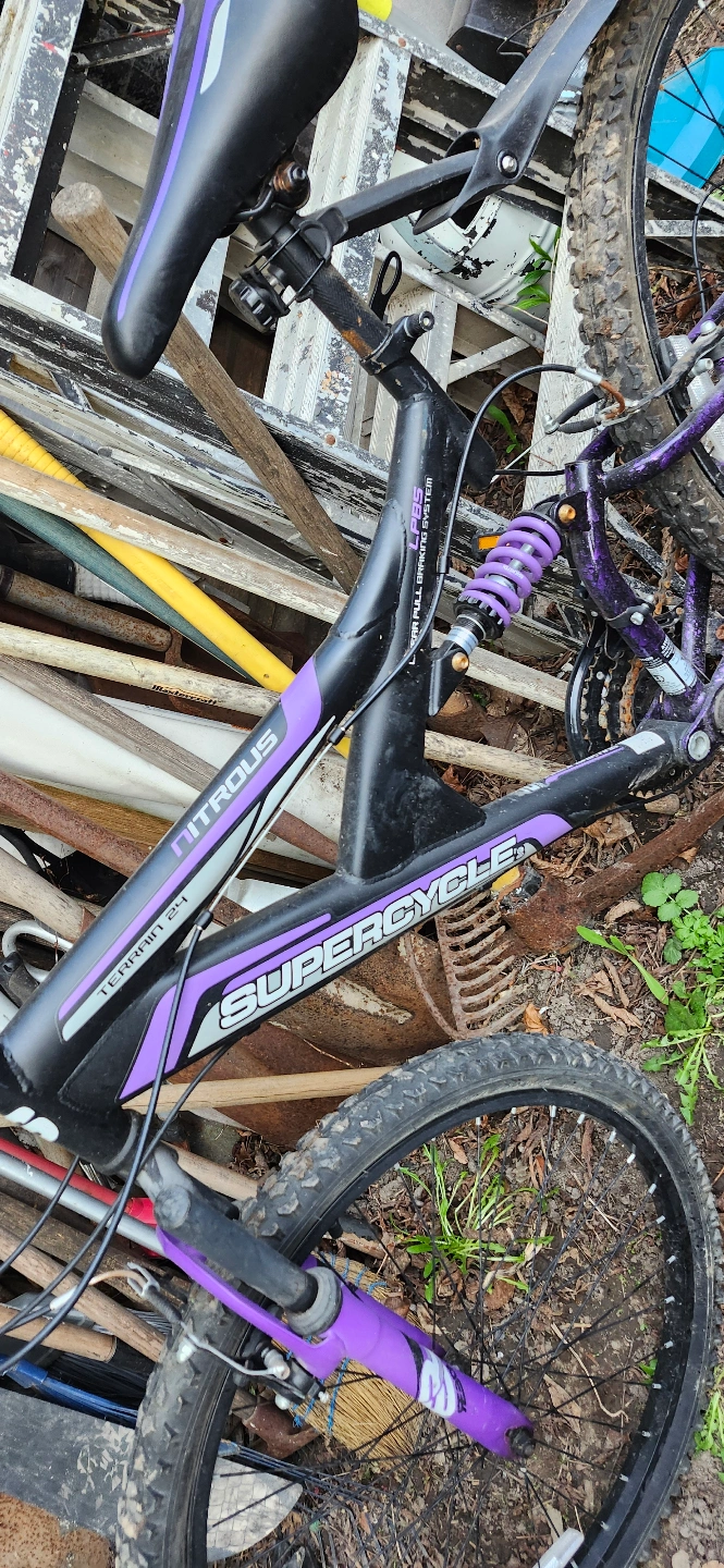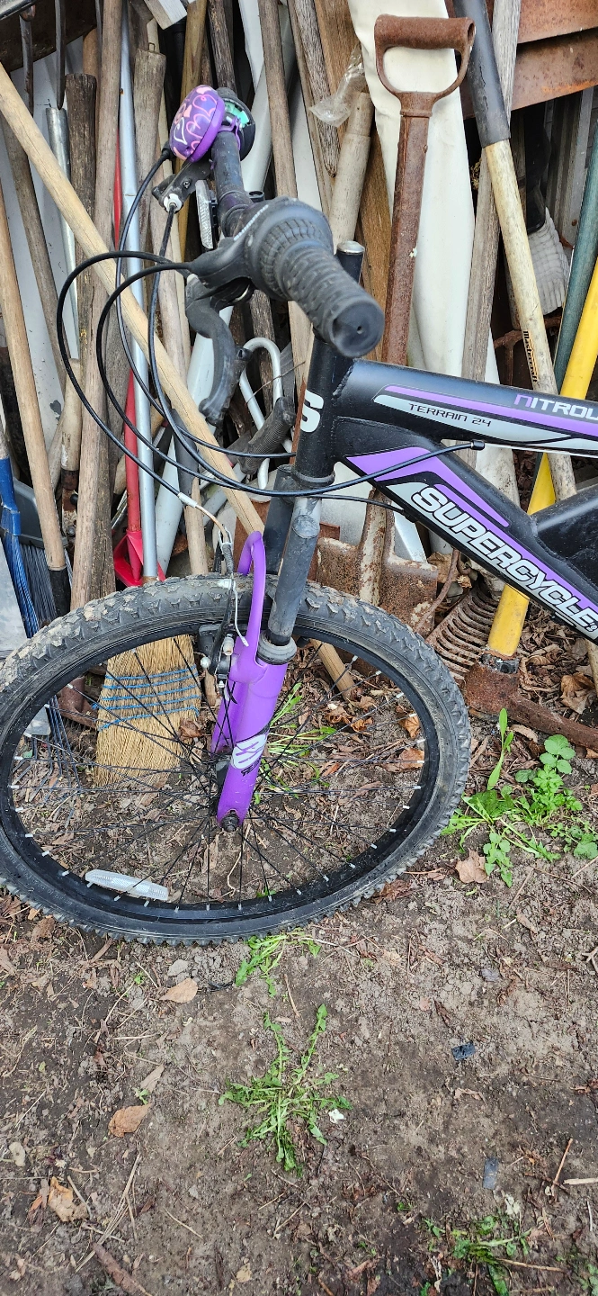 Used girls' mountain bike. Purple and black. 26-inch wheels. Front suspension. Shimano shifters. price only cash only pickup no delivery. Meet up 801 O'Connor drive outside TD bank door