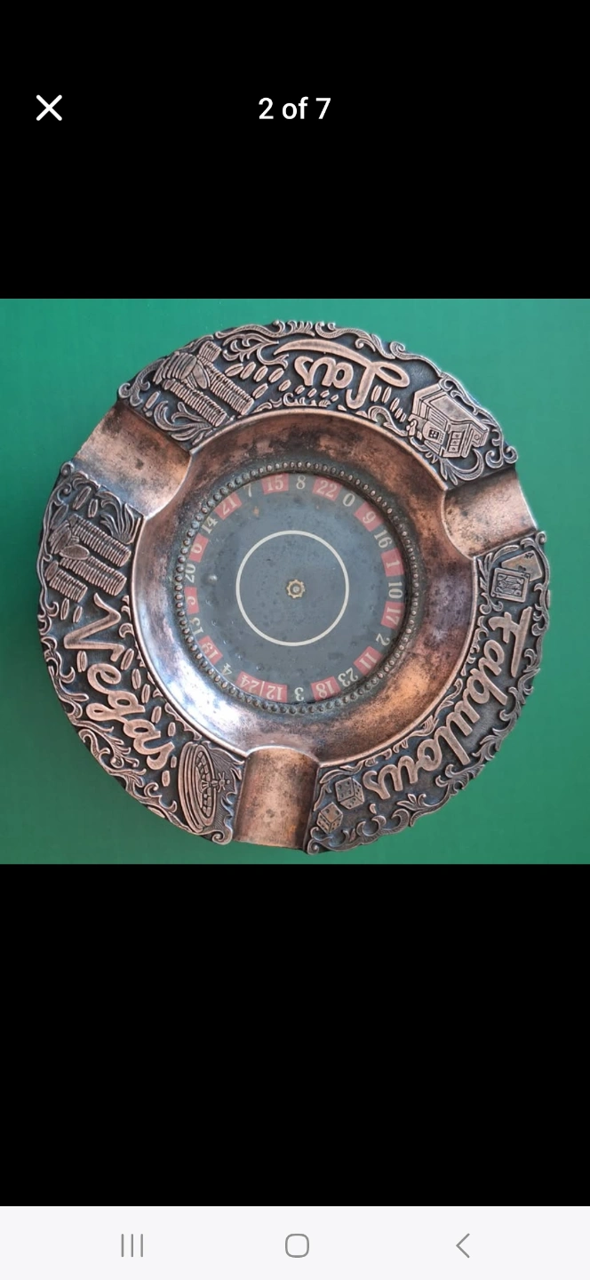 Unique vintage ashtray. Features a roulette wheel design. Working mechanism. Copper. Made in Japan. Shows some wear consistent with age.