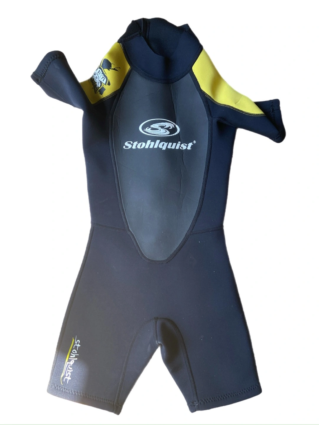 Child's shorty wetsuit. Black and yellow. 2mm Super Stretch. Size Xsmall.