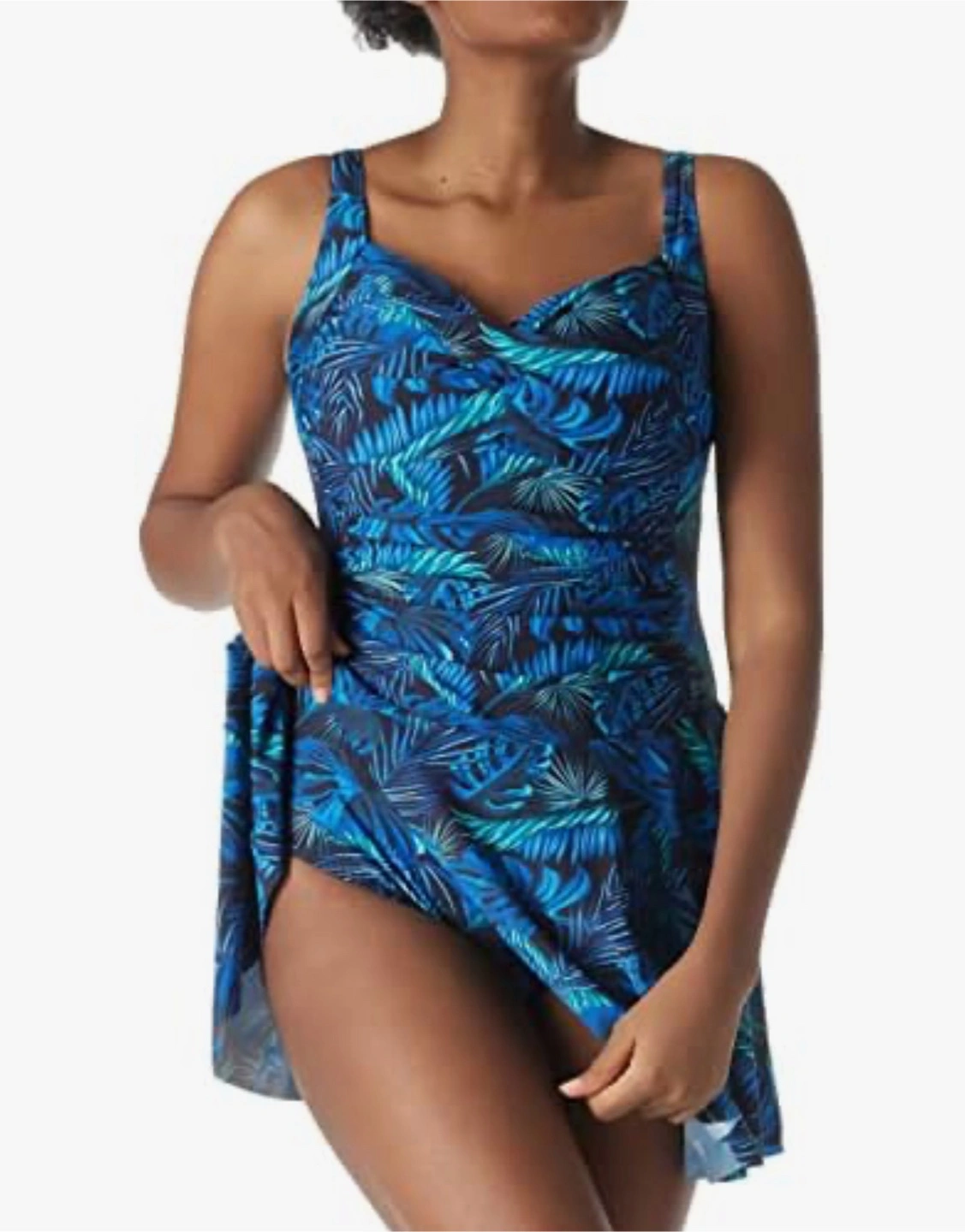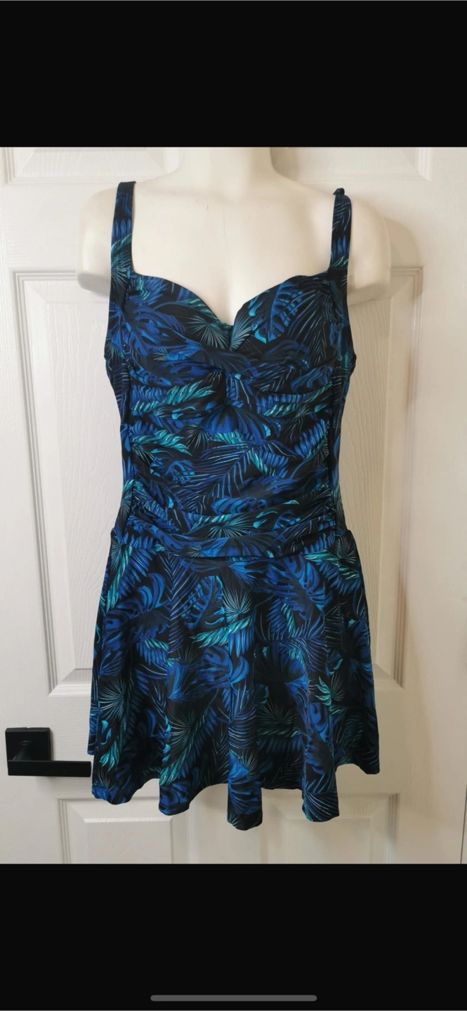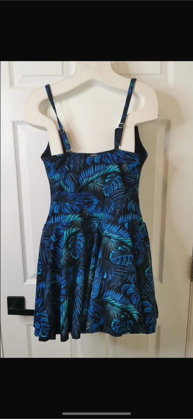 New with tag! Retails for $119.99 Retro one-piece skirt features a built-in bikini bottom design, good coverage and stylish. The square neckline skirt with wide and adjustable shoulder straps will be easy to adjust the tightening effect as your torso, which is compatible with any kinds of shapes. Twist Front Molded Cup design provide support for boobs. Non-removable soft padding. Shirred One Piece Swimsuit: Ruched design in the torso accentuates your curves and hides imperfections perfectly while still being flattering. This one piece skirt is easy to wear as casual skirt or swim dress. Excellent for an active life including: party, beach, holiday, swimming pool etc. The soft and comfortable fabric, which provides you the freedom to enjoy fashion. Full lining ,Skin-friendly, breathable, soft, quick drying. Gorgeous blue and green tropical print. Skirt-style bottom. Adjustable straps. Excellent for swimming or lounging.