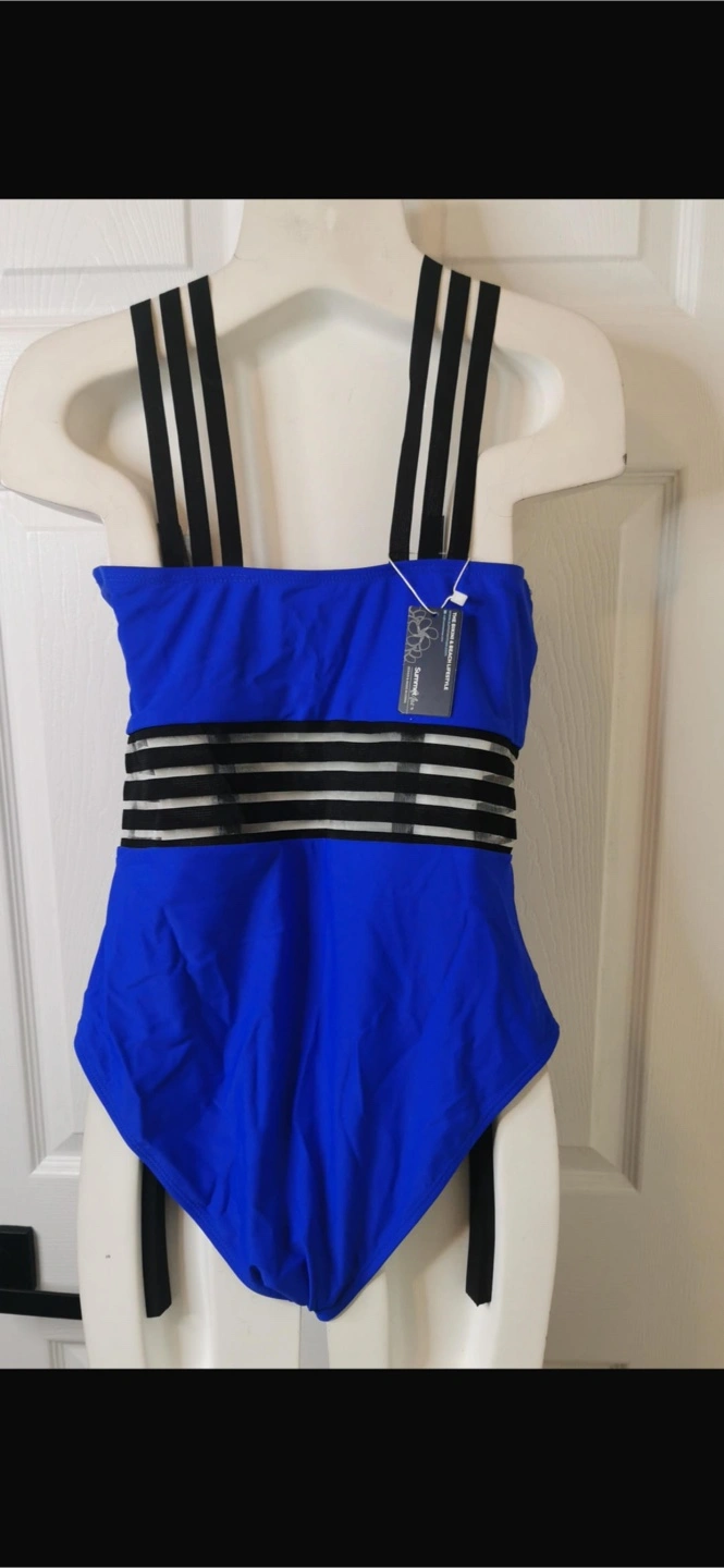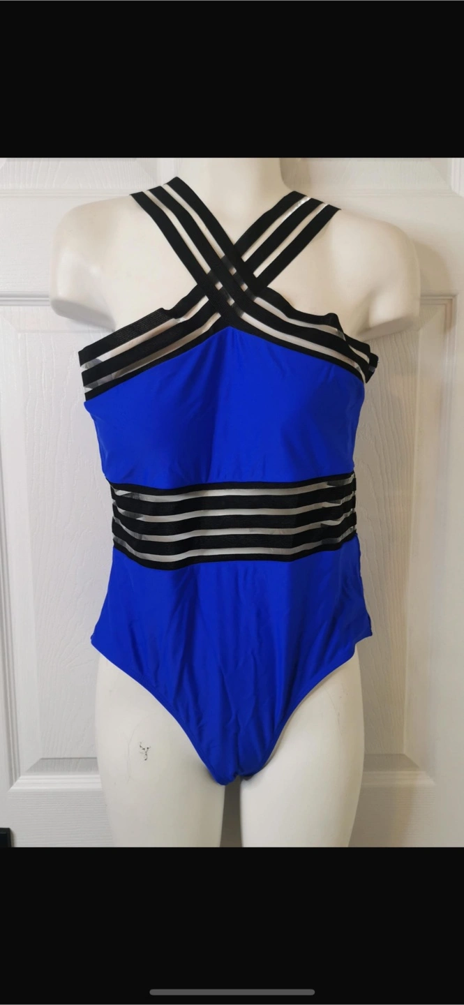 New with tag! Retails for $55. Women's one-piece swimsuit. Features criss-cross straps and mesh detailing at the waist and shoulders. Bright blue colour. Excellent for swimming and sunbathing. 【SEXY SWIMSUITS】Mesh panels at the neckline and waistline make you sexy and elegant. V-neck design and front cross-over wide shoulder straps could contour your shape well and make you attractive, charming, and fashionable. 【ONE PIECE CHIC】This is a unique alternative to a bikini swimsuit style and is the ultimate showstopper if you are looking for more coverage while still having a fun flare. Removable, lightly padded push-up cups can better support the chest and shape your body. 【OCCASIONS】Tummy control bathing suit is perfect for swimming class, exercise or training, surfing, diving, beach, pool, honeymoon, Hawaii, summer vacation, SPA, swimming, and other water activities. It can also be a good gift for your family members, friends, or others you love.
