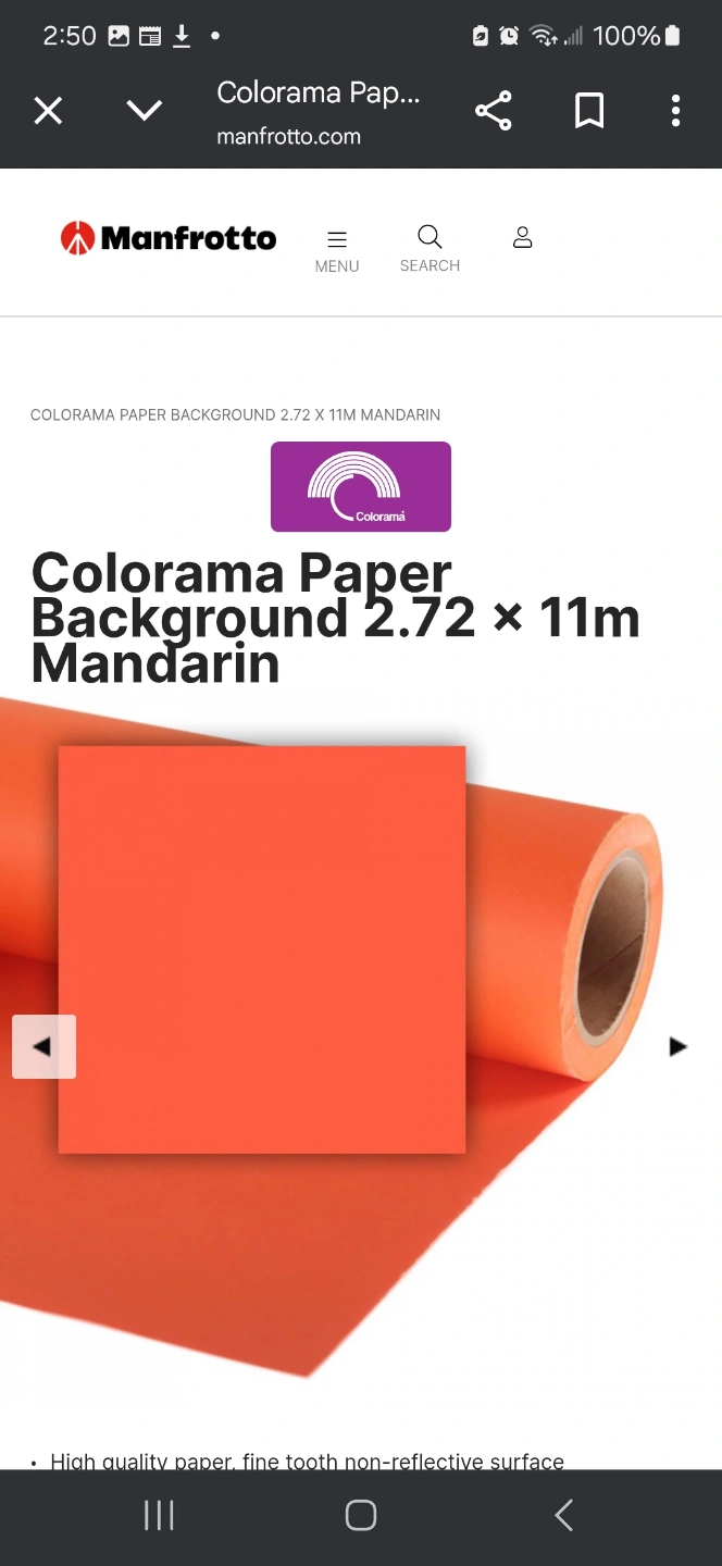 Four rolls of Colorama background paper. Rose Pink (184), Mandarin (195), Buttercup (170), and Mineral Grey (151). Each roll measures 11m x 2.72m. Made in the USA. 30.00 each or make an offer on all