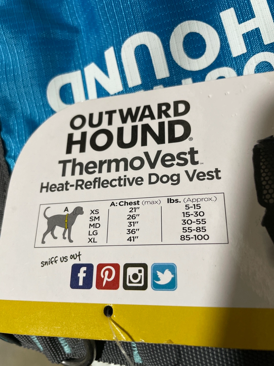 Outward Hound ThermoVest for dogs 55-85 lbs. Large size. Heat-reflective dog vest. Thermal lining. Grey and blue.