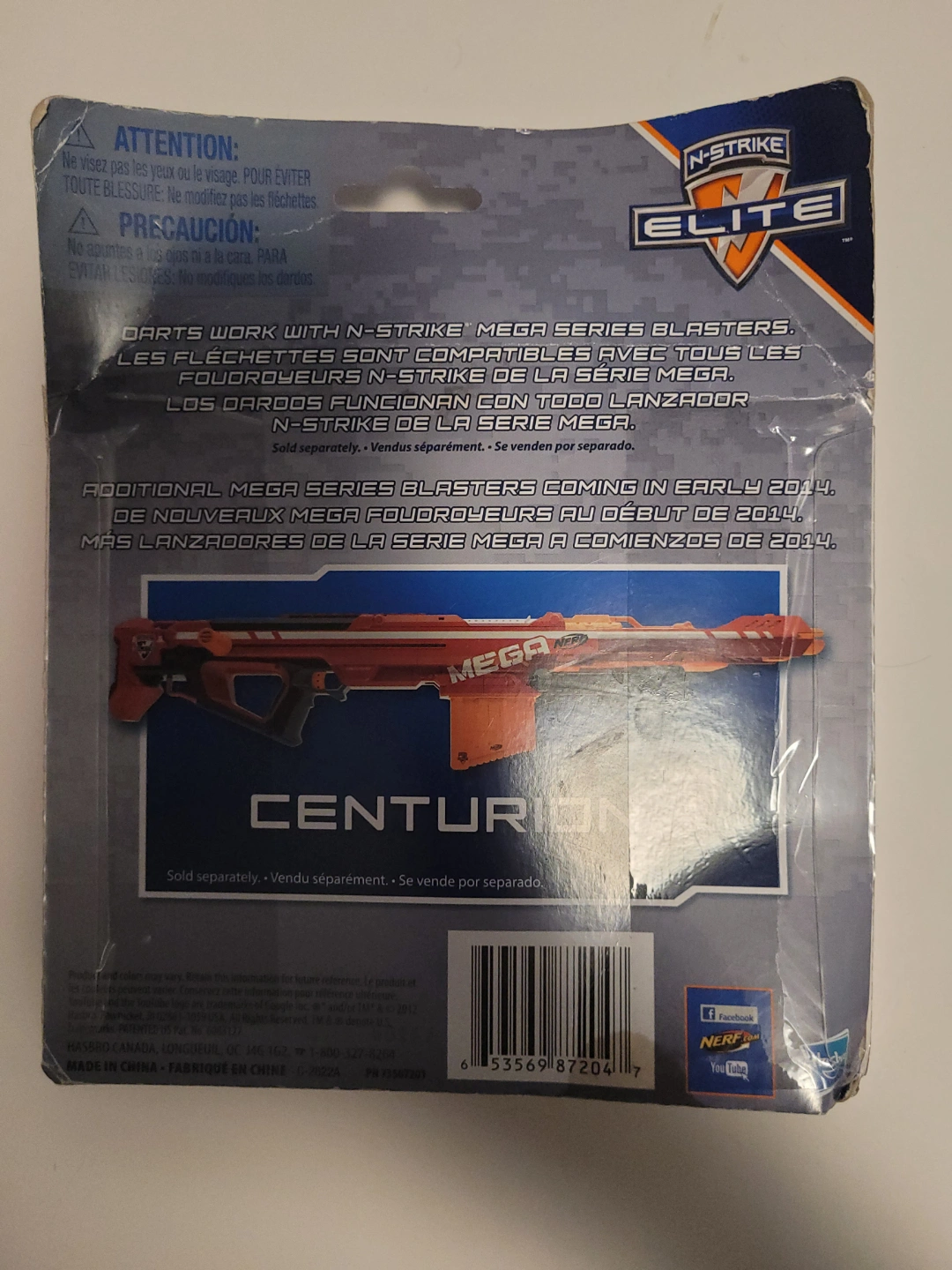Ten red and orange Nerf Mega darts. Compatible with N-Strike Mega series blasters. Brand new in package. Great for Nerf battles.