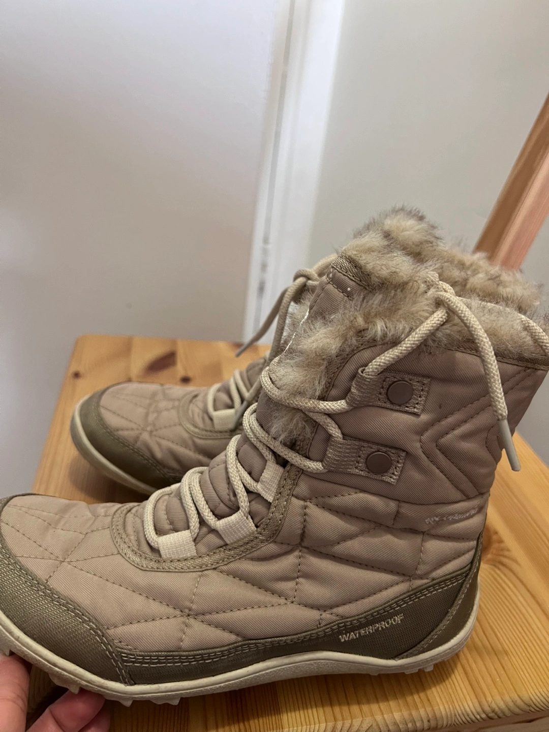 Warm and waterproof winter boots. Lace-up style. Faux fur lining. Great for snow and cold weather. Lightly used.