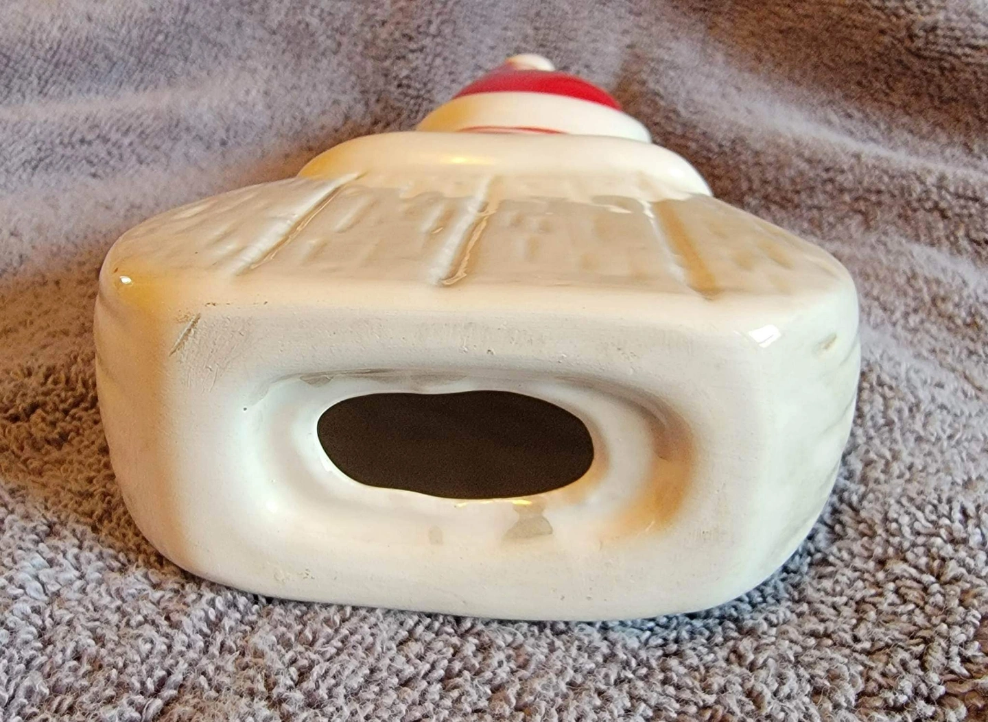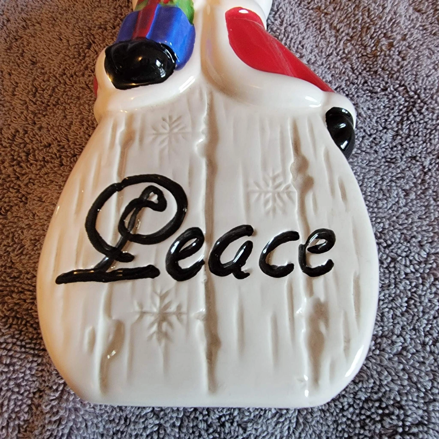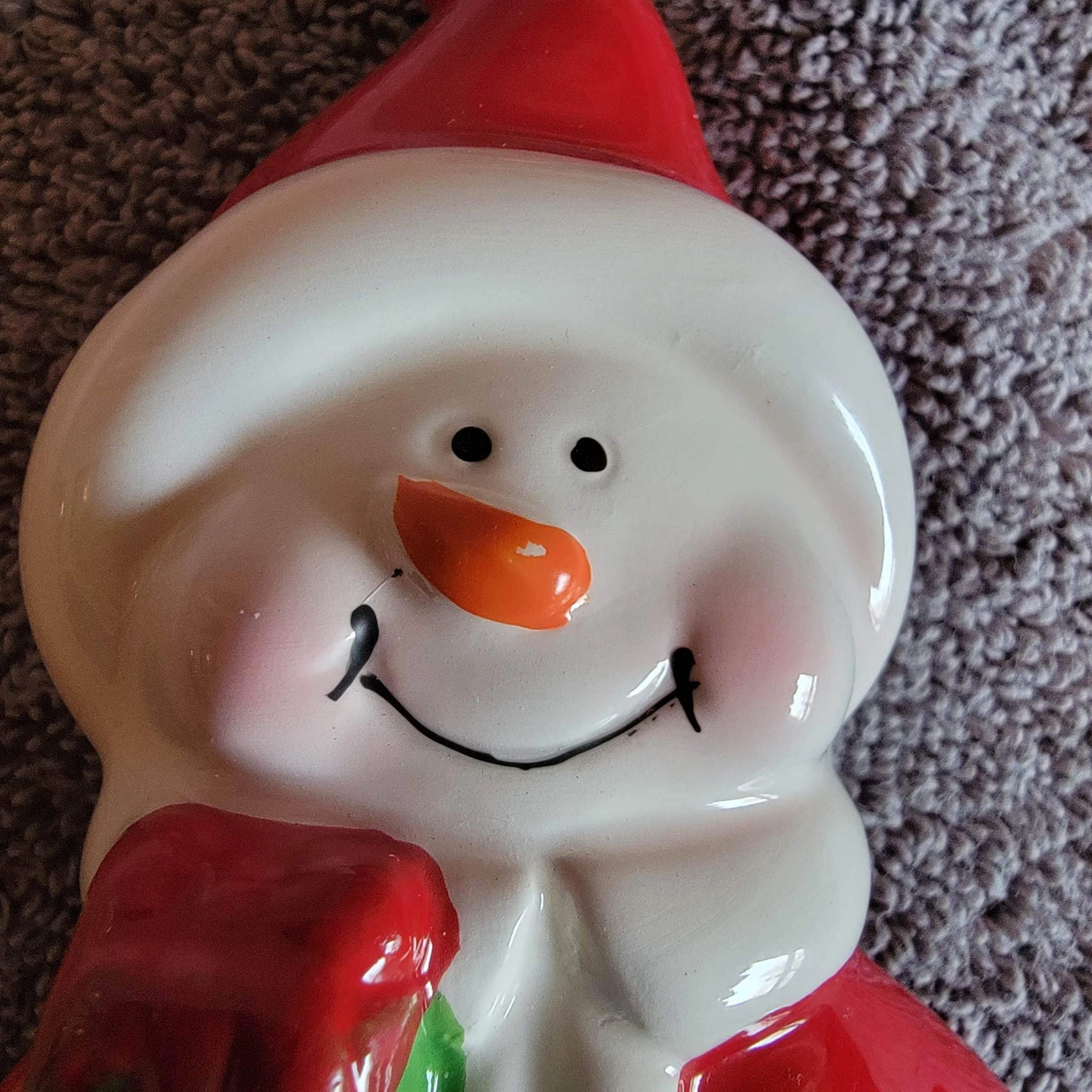 This Multi-Coloured Santa Snowman Ceramic Christmas Figurine has a little of wear on the Nose and Bottom but otherwise it is in Excellent condition. Made of Ceramic. Measurements: Length: 3 1/2 inches. Width: 1 1/2 inches. Height: ~ 7 1/4 inches. Perfect to decorate your home with. From a smoke free home. Cash and E-Transfer accepted. Pick up only.