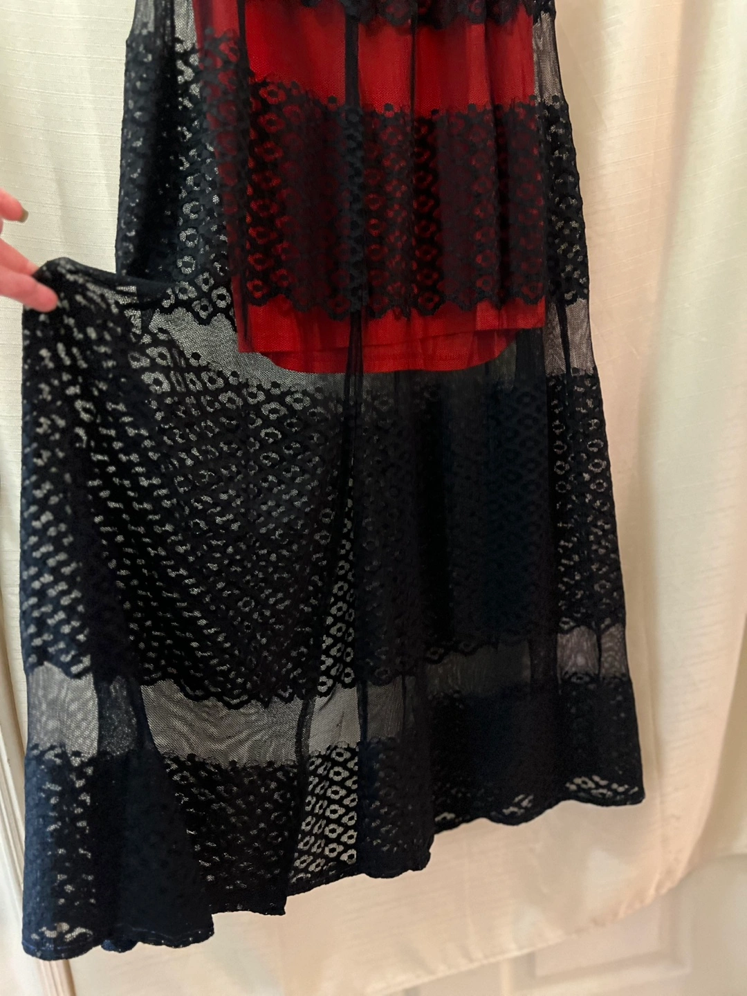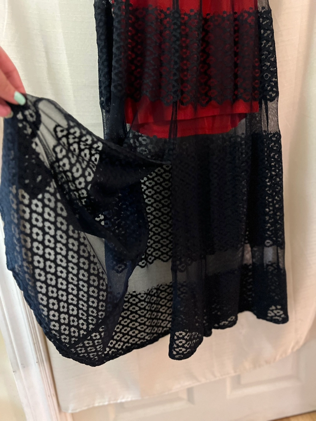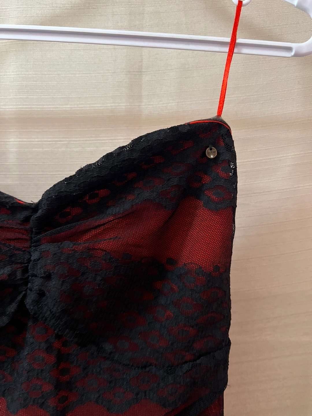 Beautiful Guess strapless maxi dress. Features red and black lace overlay. Floor-length skirt. Perfect for a special occasion, summer or vacation! Size small Ptp- 14 Length- 25 (under dress) 44 (sheer overlay) Waist- 13