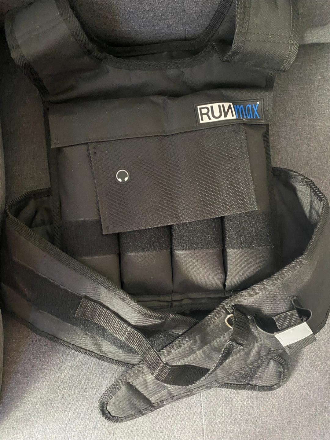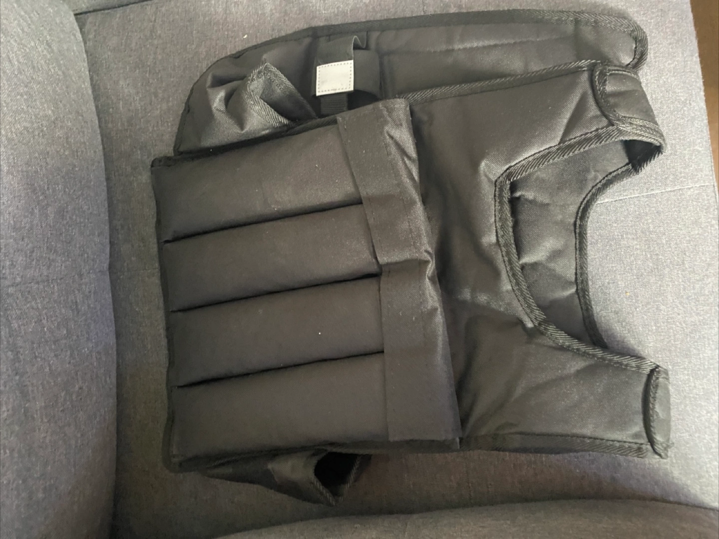Black weighted vest, adjustable straps. Multiple weight pockets. Great for workouts. Selling cause to heavy for me bought a 10lb This is 20lb Pick up only