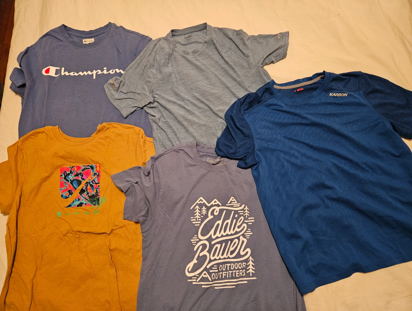 Men's t-shirts very good conditon size M. Can separate if interested. Pick up Vic Park & St.Clair. Includes NIKE (mustard colour with pattern is like new) Eddie Bauer, Champion, Old Navy and Costco brands, two are active moisture wicking shirts. No holds, fastest pick up. Price is for all 5. Cross-posted.