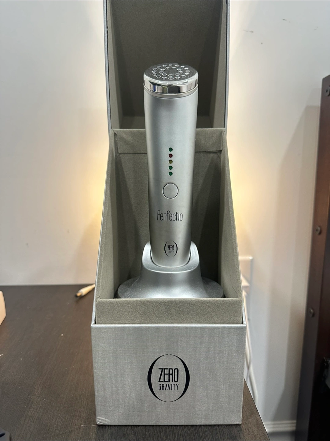 New, unopened Perfectio LED light therapy device by Zero Gravity. Silver colour. Comes in original packaging.