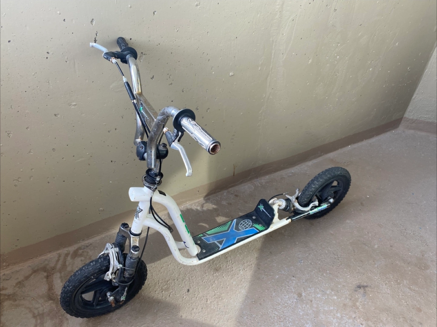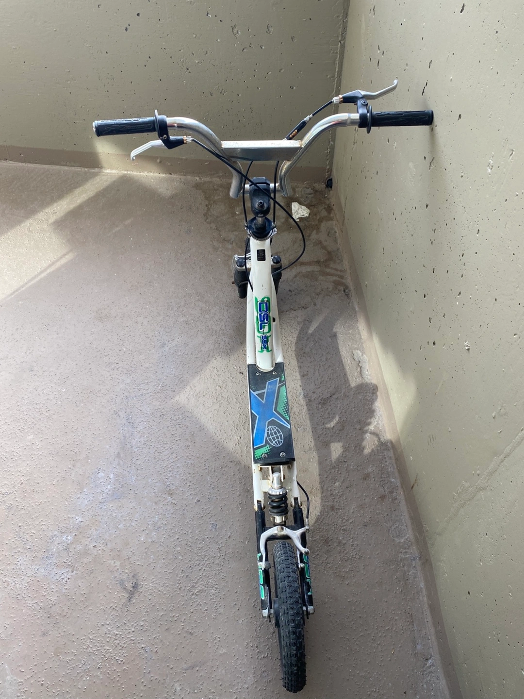Used Xootr scooter. Features large wheels and suspension. Shows wear from use.
