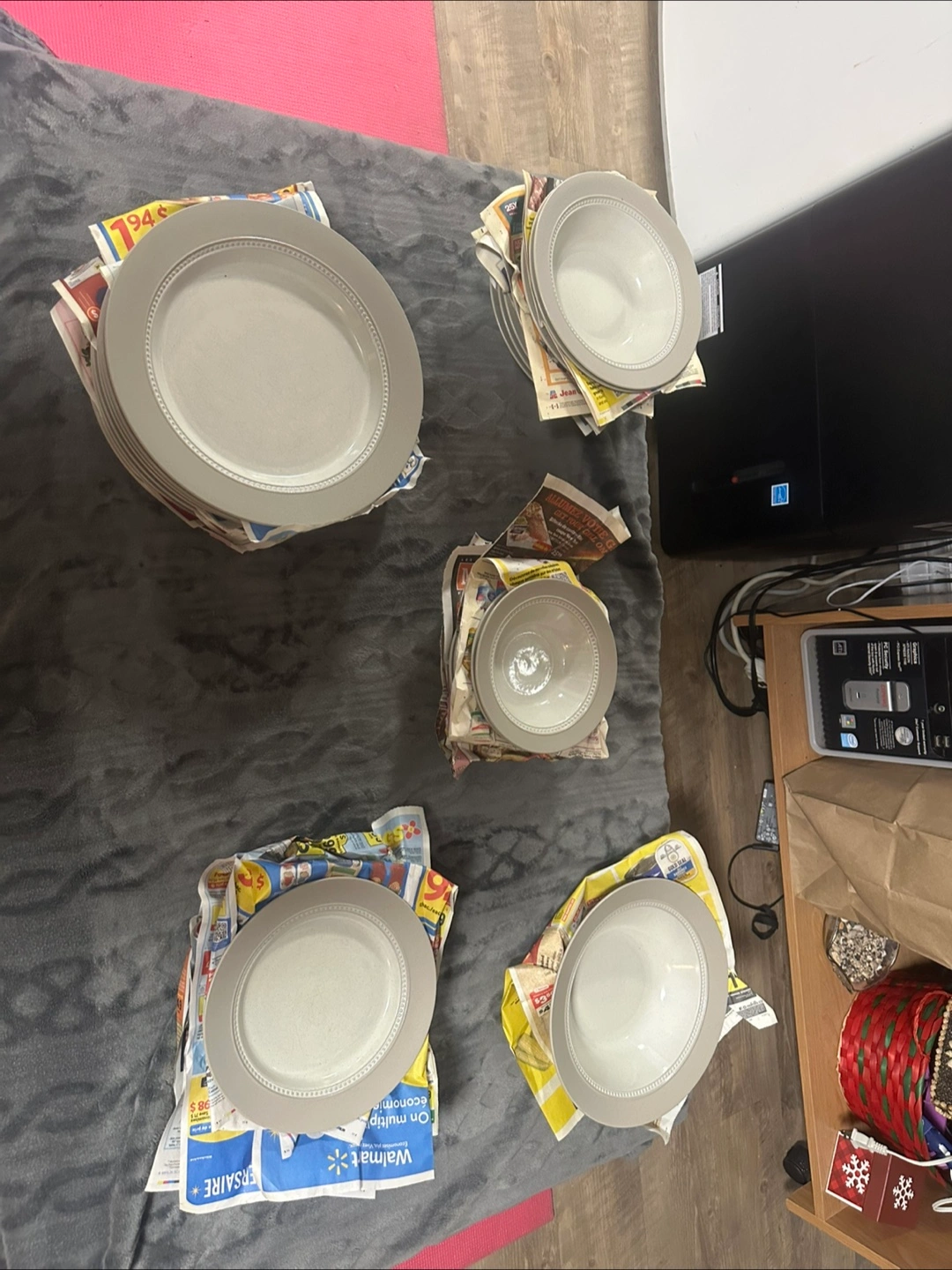 Set of dinner plates and bowls. Neutral grey colour. Elegant design. Perfect for everyday use or special occasions. 8 large plates 8 small plates 8 medium bowls 8 small bowls 1 large bowl