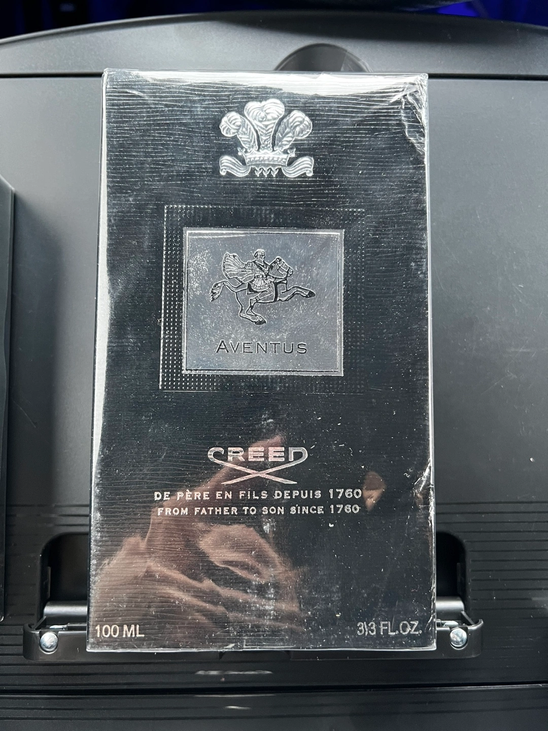 New, unopened bottle of Creed Aventus Eau De Parfum. 100ml / 3.3 fl.oz. Made in France. Box shows some minor shelf wear.