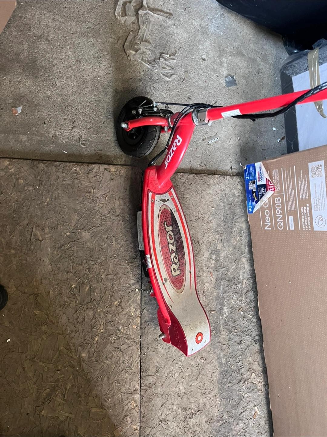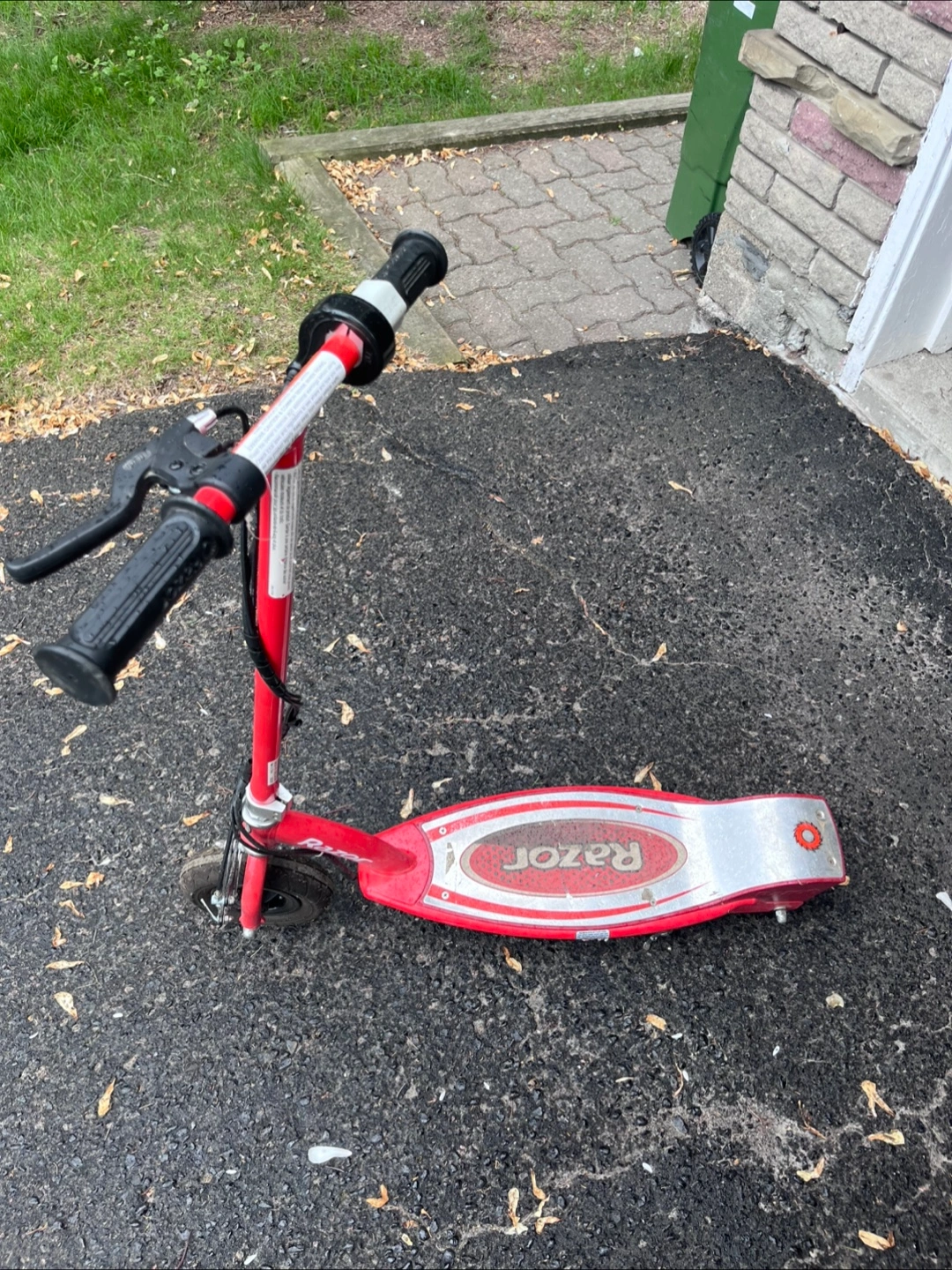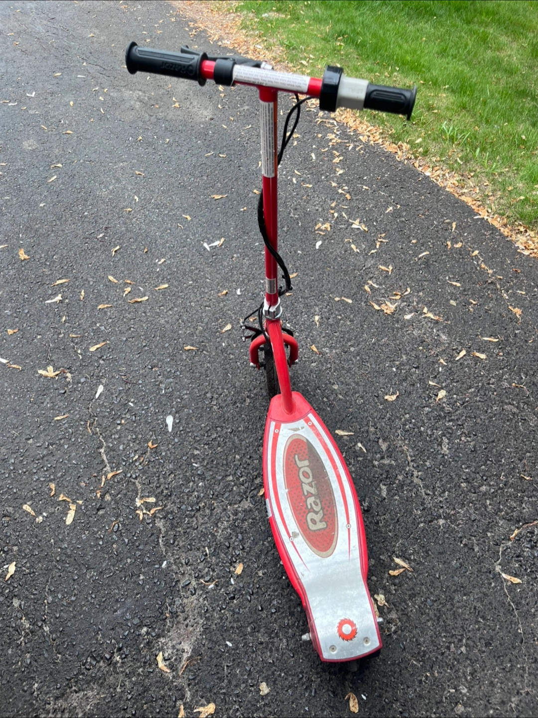 Red electric scooter. Decent condition. Fun for kids and adults. Easy to use.