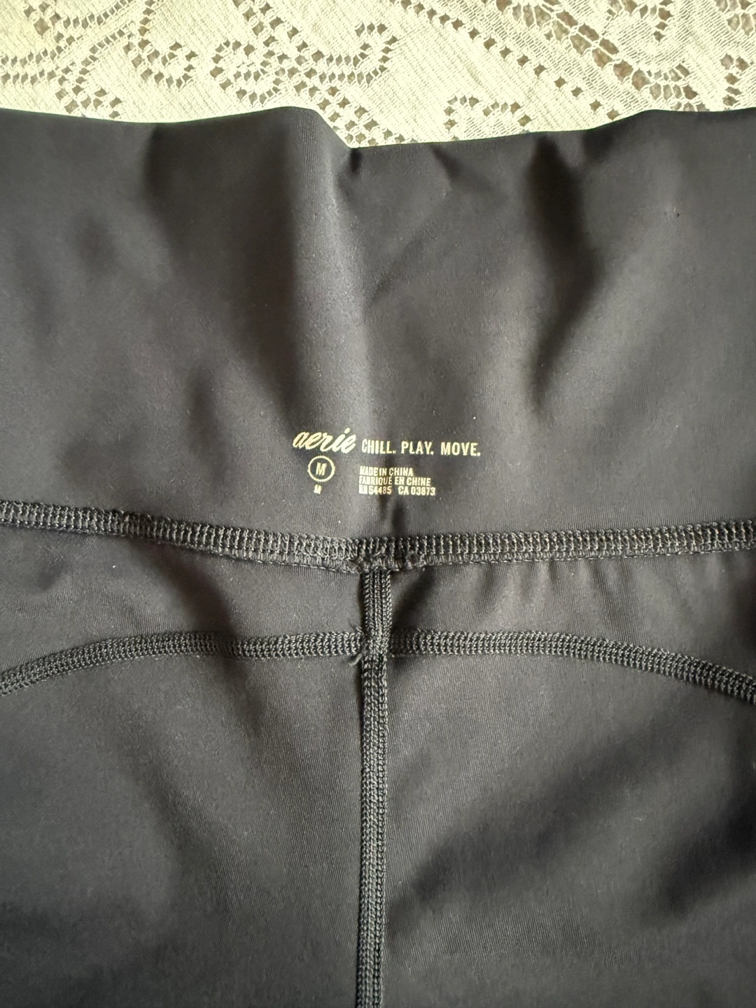 MEETING LOCATION: Scarborough Town Centre Mall •••Aerie Chill. Play. Move. Leggings••• From Aerie's popular Chill. Play. Move. series, these shorts combine comfort with style. ***Size: Medium ***Color: Black ***High waistband ***Sleek black design ***Mesh pockets on both sides CONDITION: Excellent - gently worn with no flaws. No rips or stains. DIMENSIONS: (in inches approx.) Waist: 12" (stretchable) Length: 33" Super comfortable! Very stretchy (material info. label not available but it is similar to the Aerie Shorts: posted in my listing). Super soft and versatile, perfect for lounging, working out, or running errands. Perfect addition to your athletic wardrobe, offering both style and functionality for any activity.