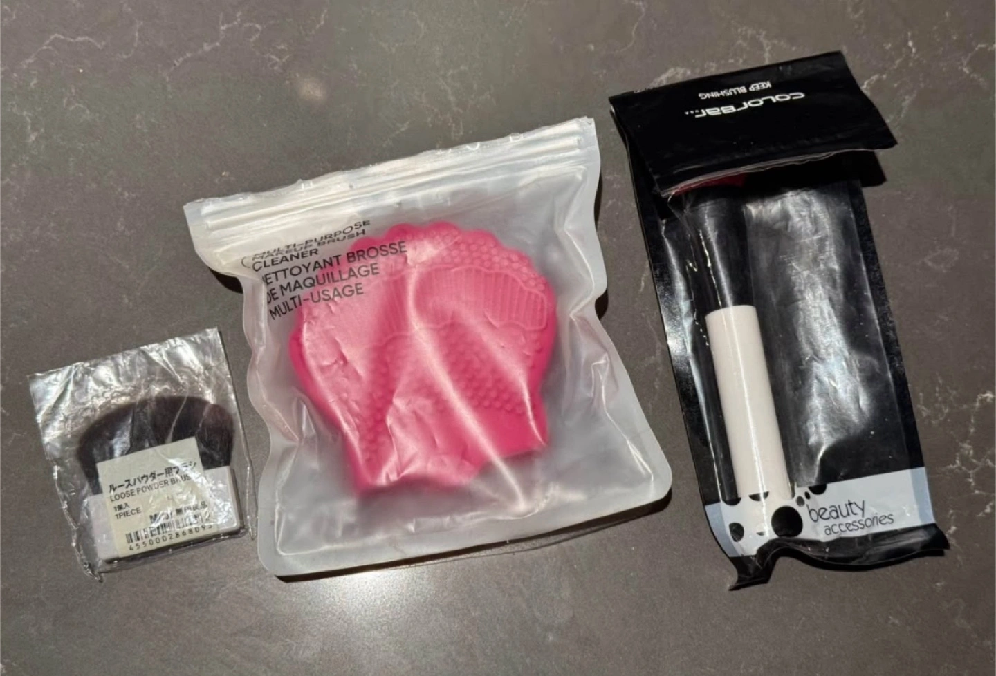 As pictured! Includes an unused multipurpose brush cleaner and a loose powder brush + blush brush. Blush brush was used once but will be cleaned and sanitized. Everything else is brand new! Take all 3 for $3. Price is firm, cash only please. Pickup downtown Toronto/Jarvis & Gerrard/Yonge & Dundas or we can arrange to meet along TTC line 1.