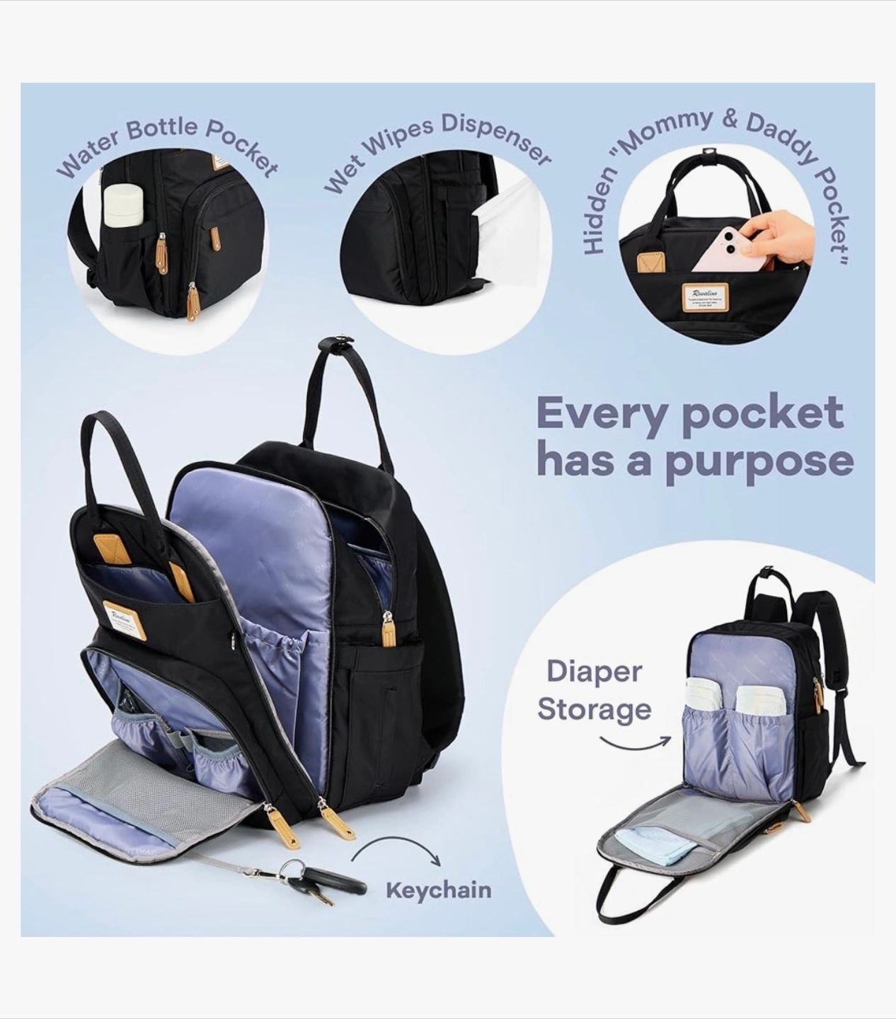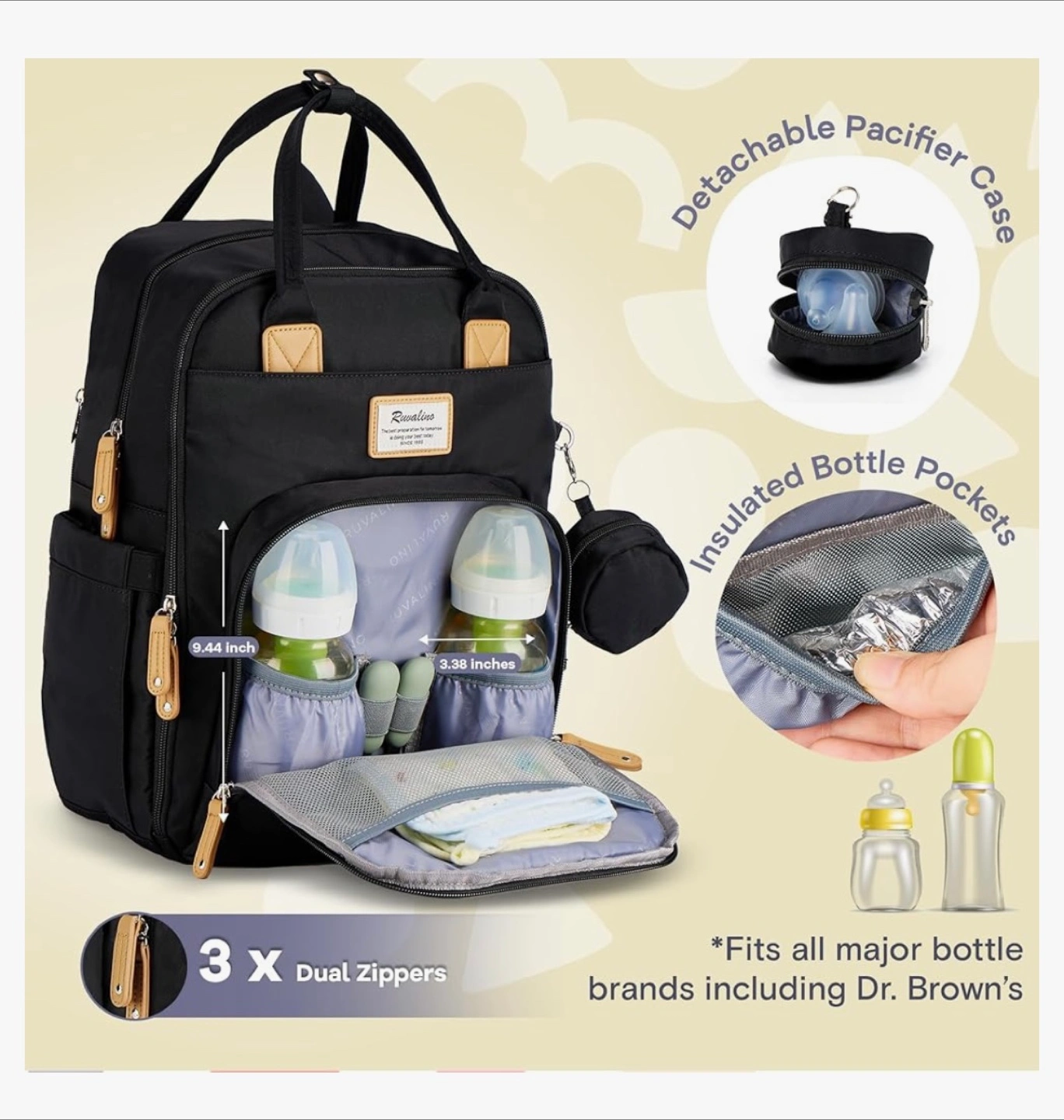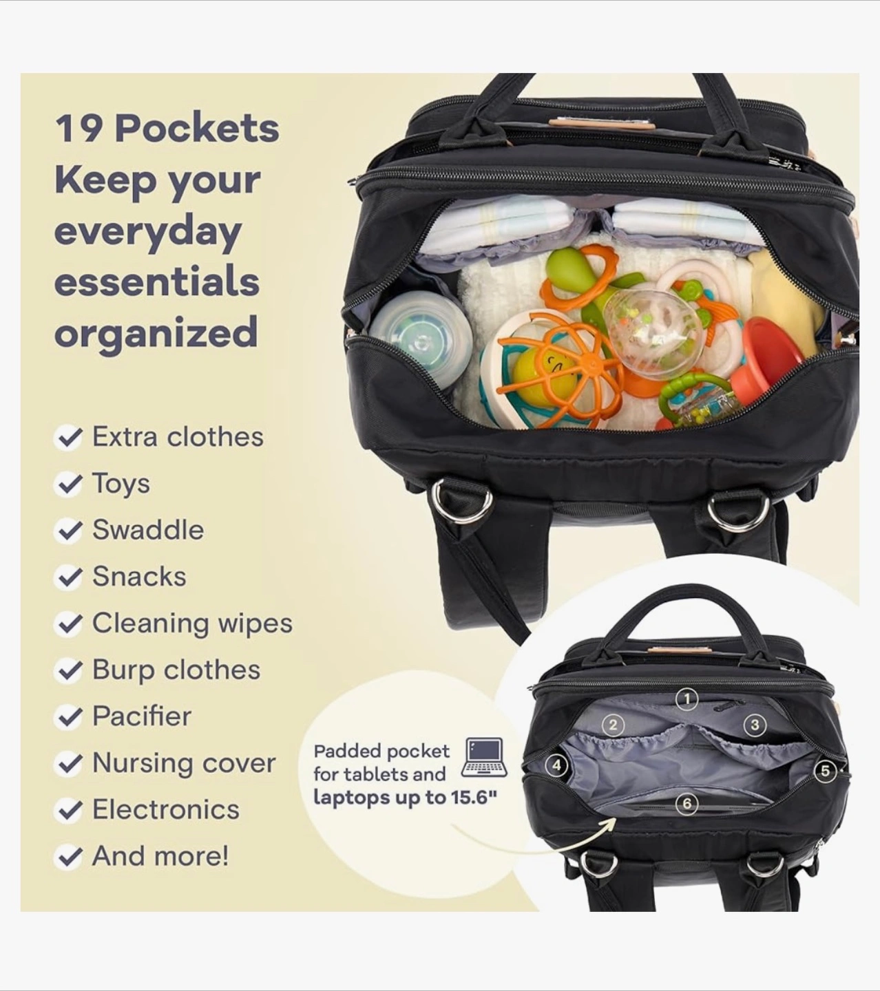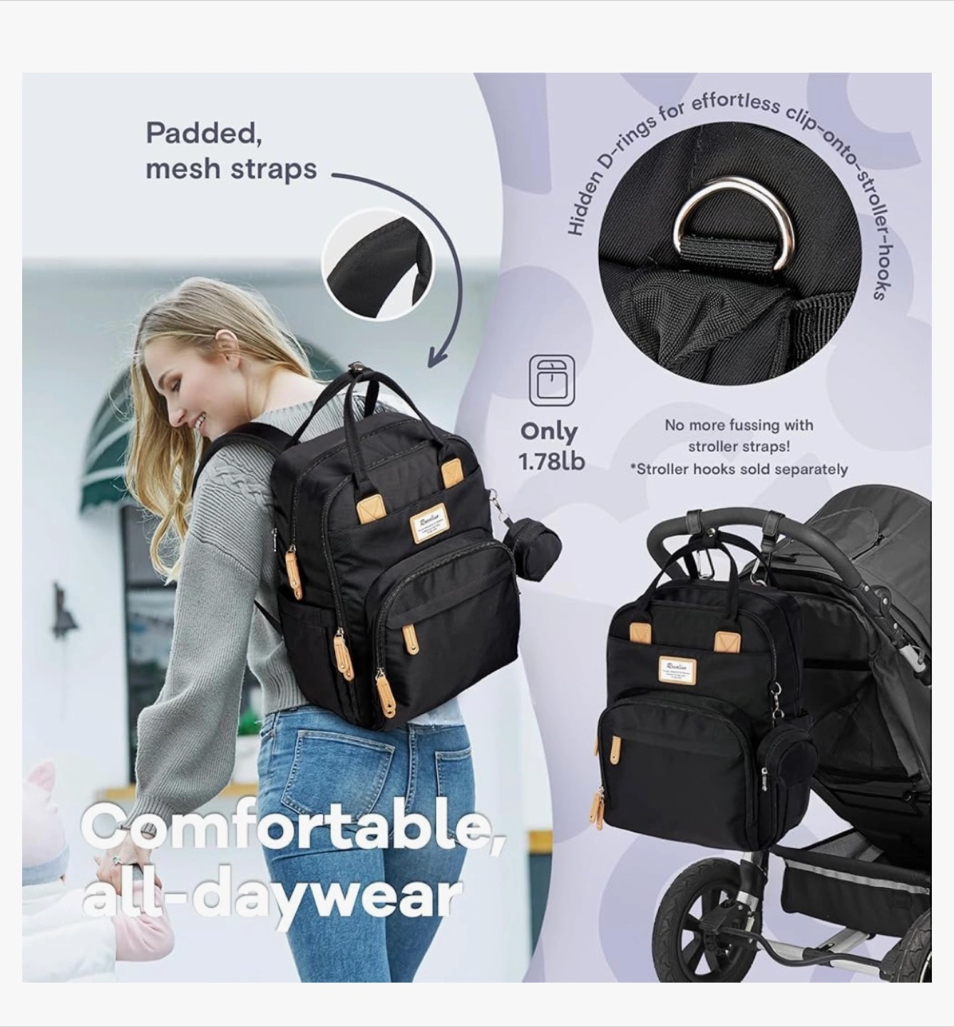 •Like New No Flaws •In Grey * Over 1,000,000 Units Sold - What You Will Get: 1 x Regular Size Diaper Backpack (Size: 11.8 x 8.8 x 16.3 inches, Weight: 1.8 lbs) with a a Pacifier Case. Two large zippered compartments and 16 pockets, roomy enough to hold most baby essentials while staying perfectly organized, without being too big or too small. The insulated pockets can hold most wide or tall neck bottles, from 5 oz to 12 oz. * Improved Practical Construction: The interior of our diaper bag includes a padded laptop pocket, mesh pocket organizers, and other organizational essentials. Keep your bottles warm in the insulated pockets, never lose your keys and wallet in Mom's pocket, and quickly grab a diaper out of the mesh diaper organizer. * Designed for Convenience: Extra wide opening makes this diaper backpack easy to find in a flash, and dual zippers for easy access and closure, even with one hand. Easy-grip handle, ergonomic back design and thick padded shoulder straps for comfortable carrying and strength building. * Convertible and versatile: This diaper bag can be worn as a backpack, a handbag, or hung on a stroller. Its minimalist design makes it timeless and perfect for any occasion, such as shopping, traveling, or even errands around town. * Durable that will last for years: Our diaper backpack is made of lightweight, durable, and waterproof fabric. Non-fraying seams and strong zippers. Reinforced stitching on the shoulder straps and handle, no tearing.