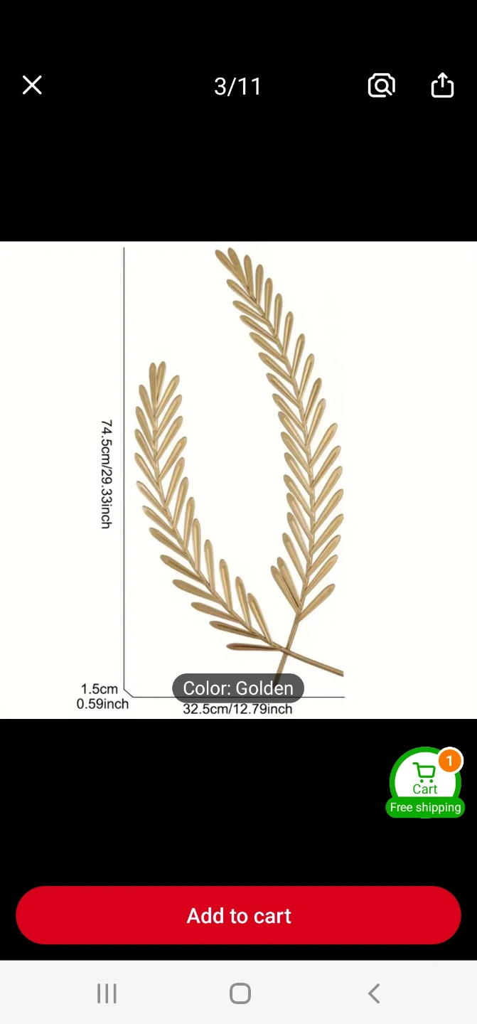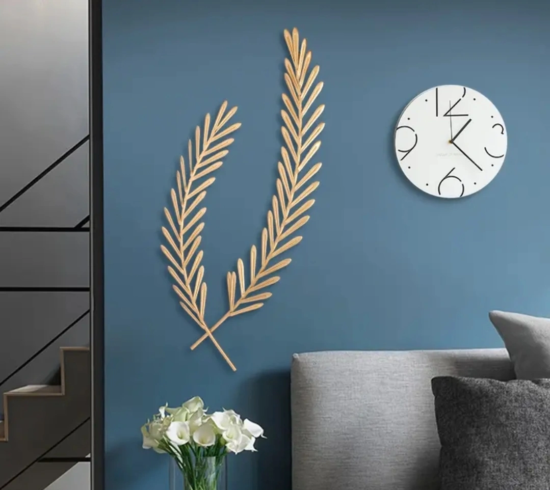 Elegant golden leaf wall art. Adds a touch of nature to any room. Great for living rooms or bedrooms. Measures approximately 71.5cm x 32.5cm.