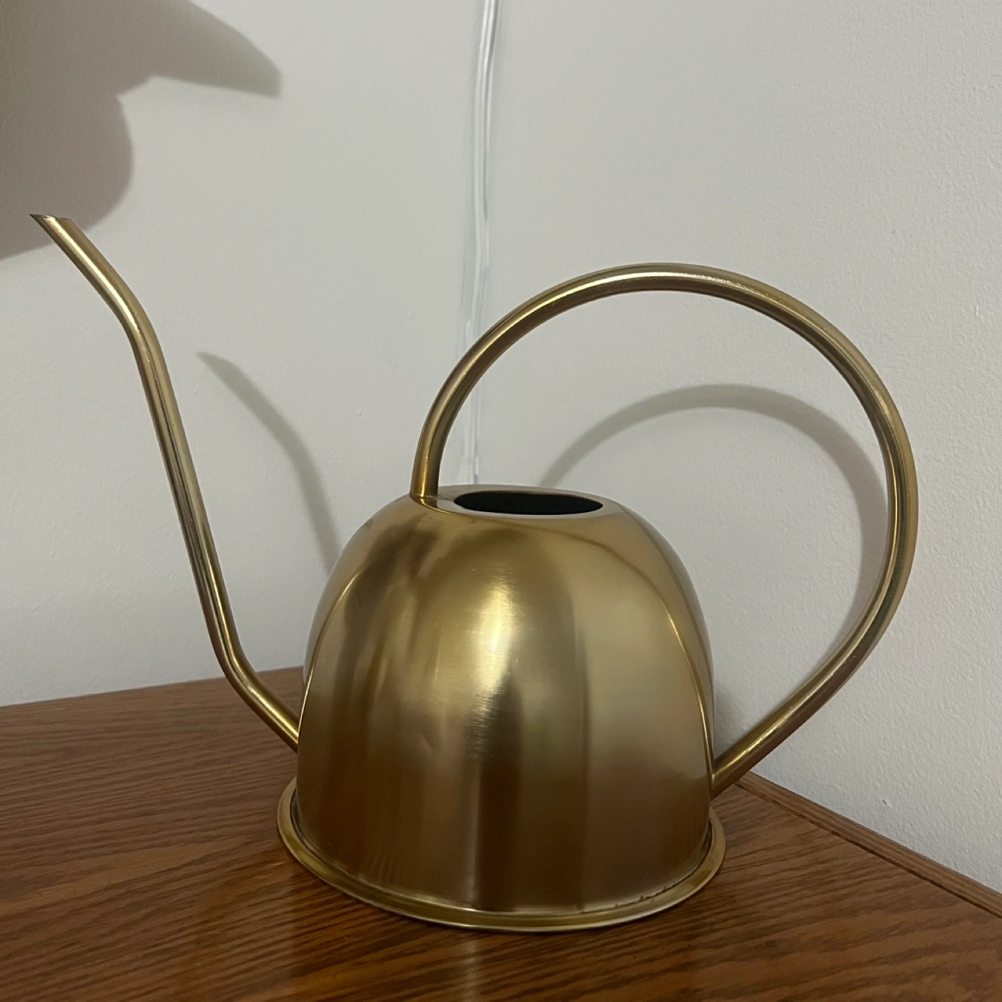 Small gold watering can. Metal construction. Perfect for indoor plants.