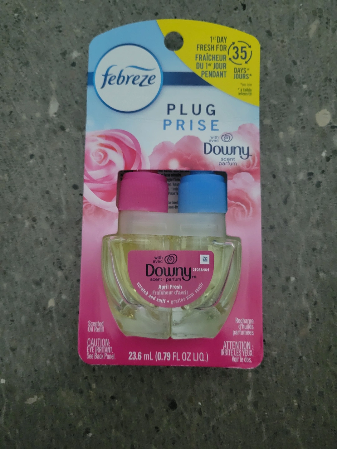 Two Febreze plug refills. Downy April Fresh scent. 23.6 mL each. New, unopened.