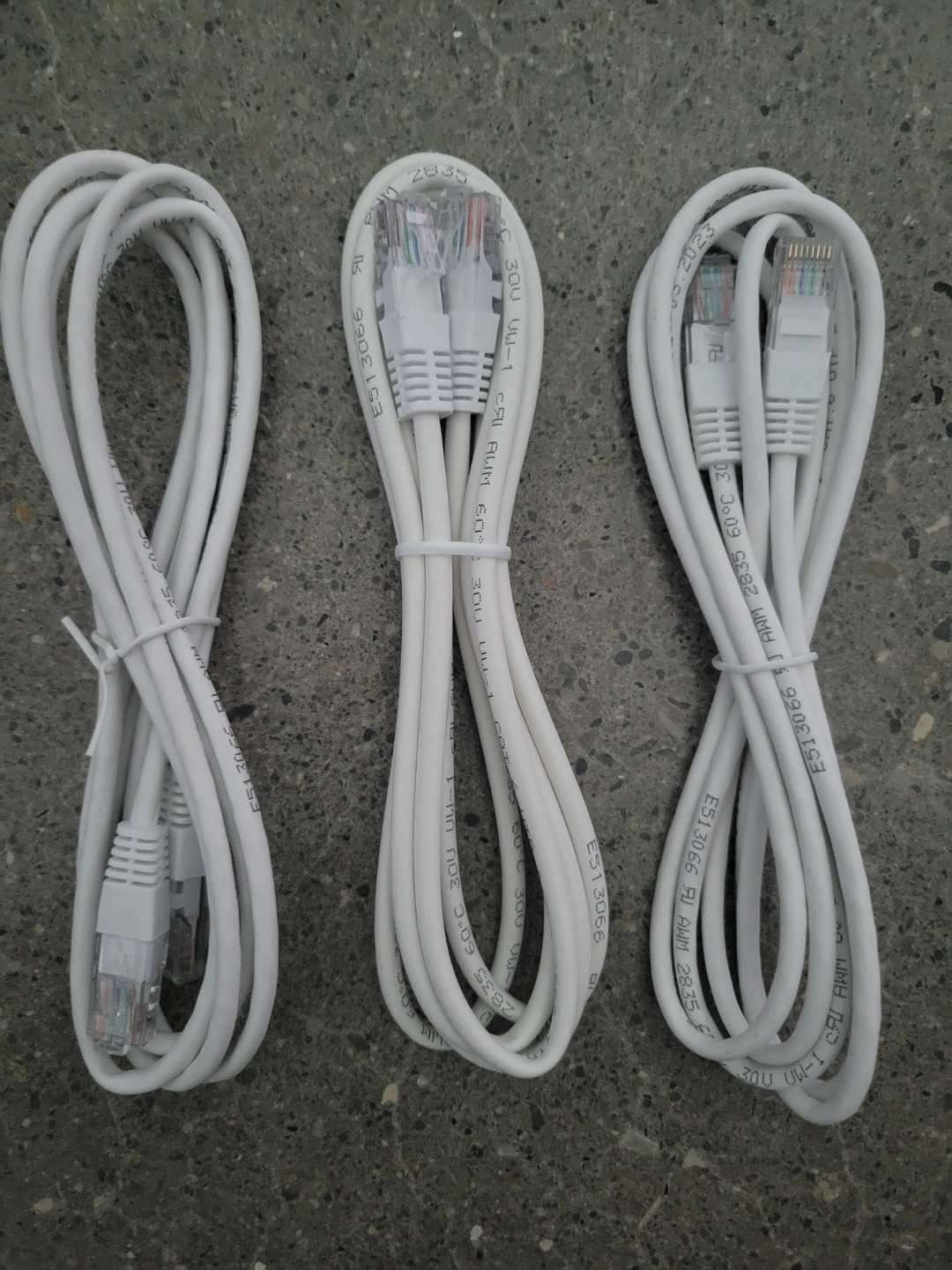 Three brand new white ethernet cables.