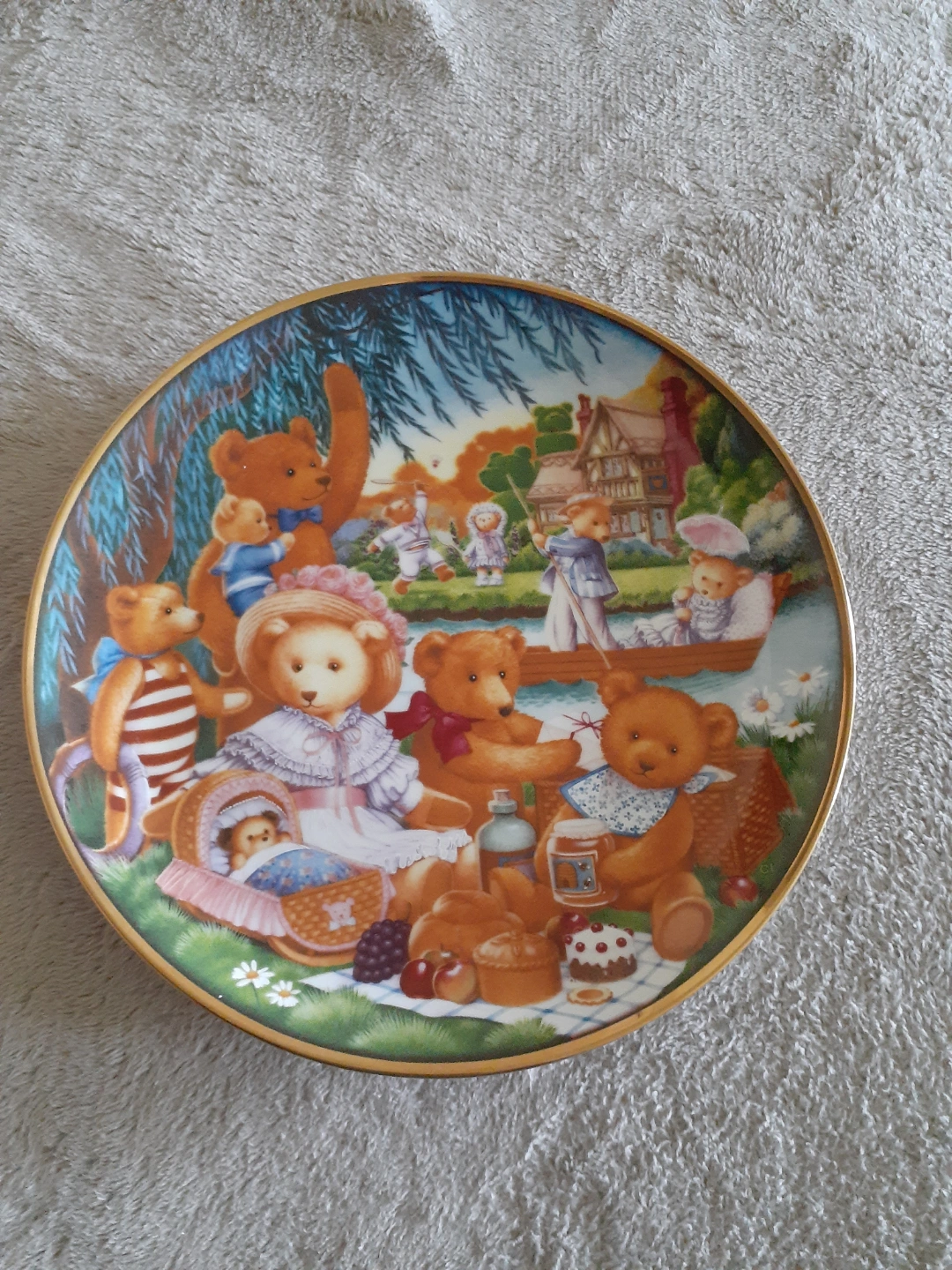 Available! Limited edition collector plate. Features teddy bears at a picnic. Fine porcelain. Plate number N1674. Certificate of authenticity included. Franklin Mint heirloom 1991. Measurement: 8" Excellent condition. No chips or cracks. Cash and Pickup at Willowdale middle school 225 Senlac rd OR meetup at NorthYork Centre Station ticket collector booth. 👉If you tap I am interested to buy, send your availability and which location for pickup as well.