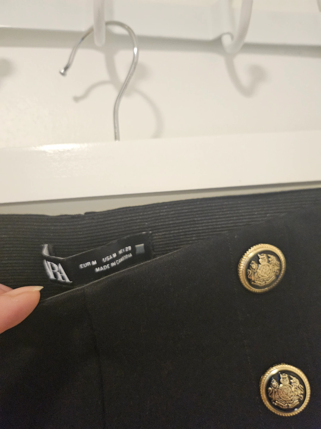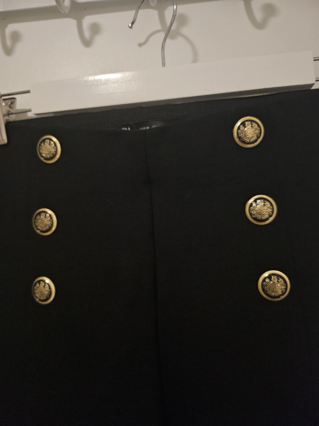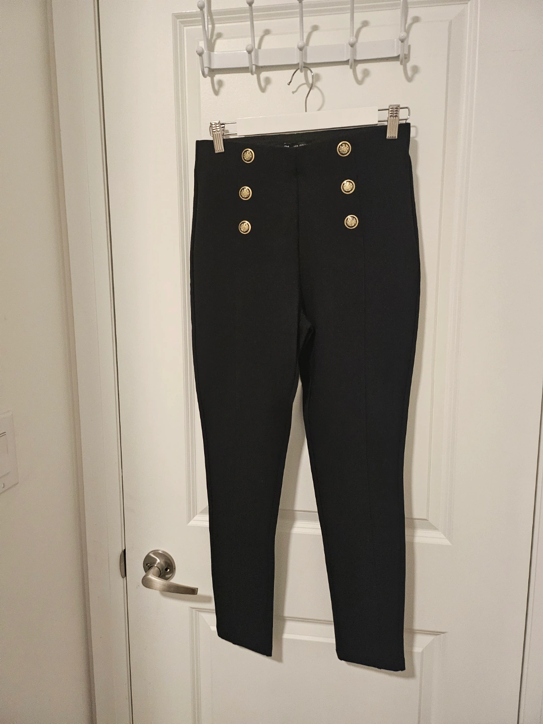 Black high-waisted pants. Size medium. Gold buttons. Made in Cambodia. Only used it once.