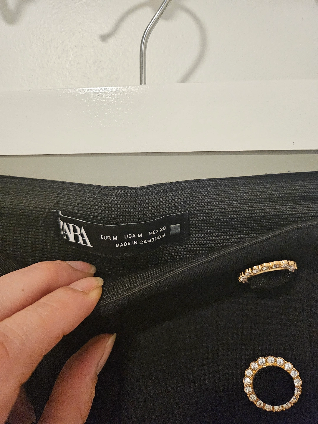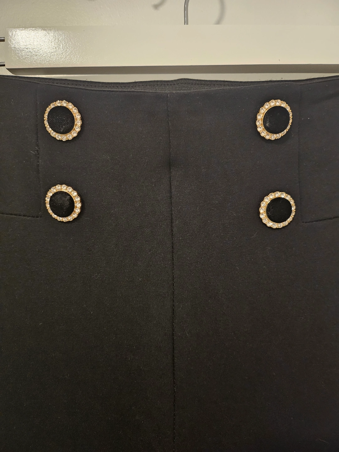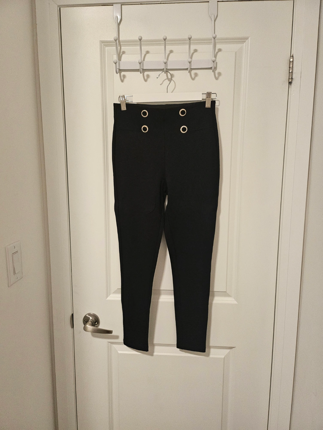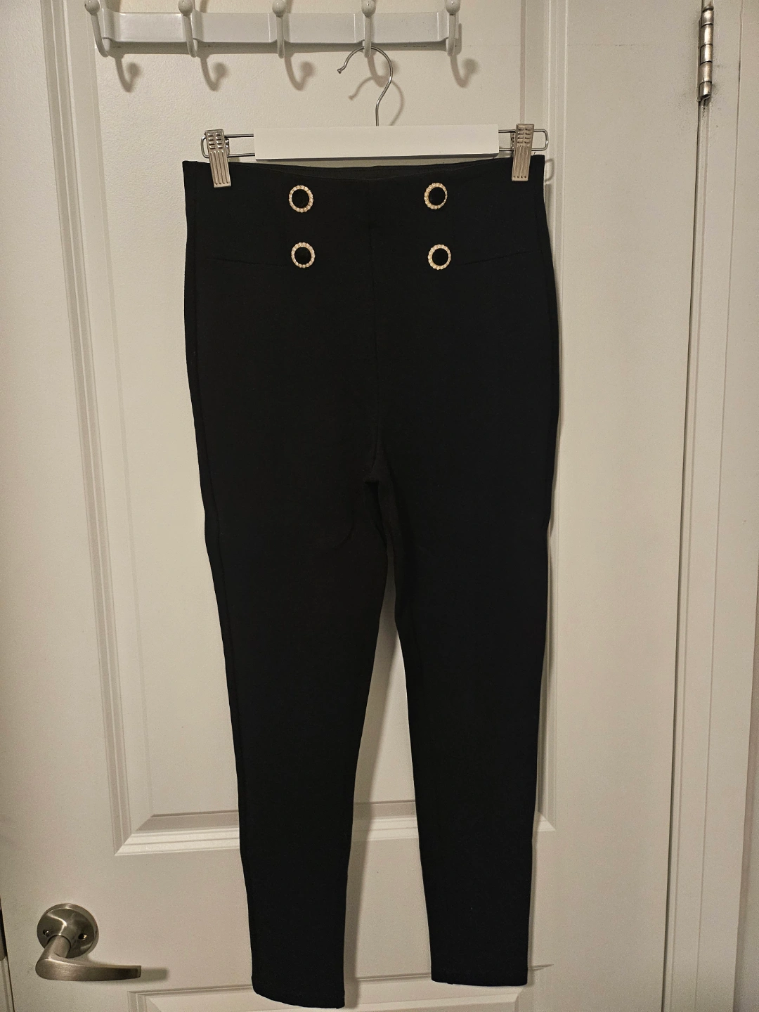 Black high-waisted pants. Three gold embellished buttons. Size Medium. Made in Cambodia. Only used it once