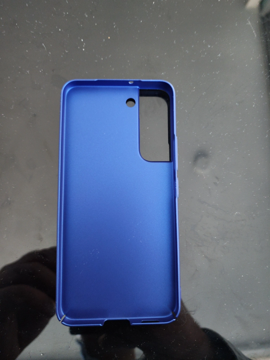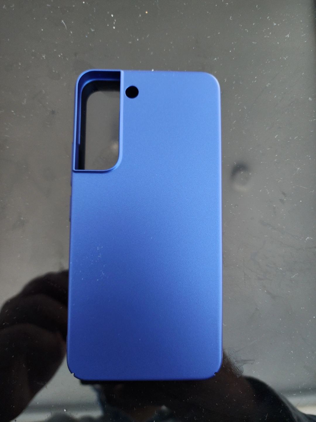 Solid blue phone case. Fits Samsung Galaxy S21. Minimalist design. Durable material. Excellent protection.