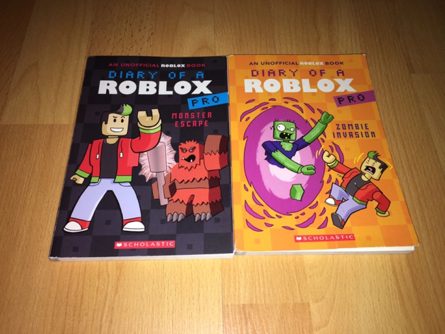Two Scholastic Diary of a Roblox Pro books. Monster Escape and Zombie Invasion. Unofficial Roblox books. Great for Roblox fans. Selling both books for $7.