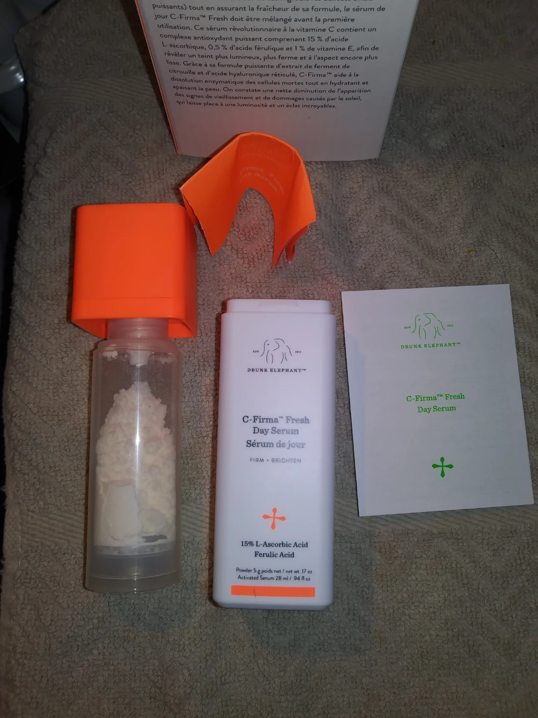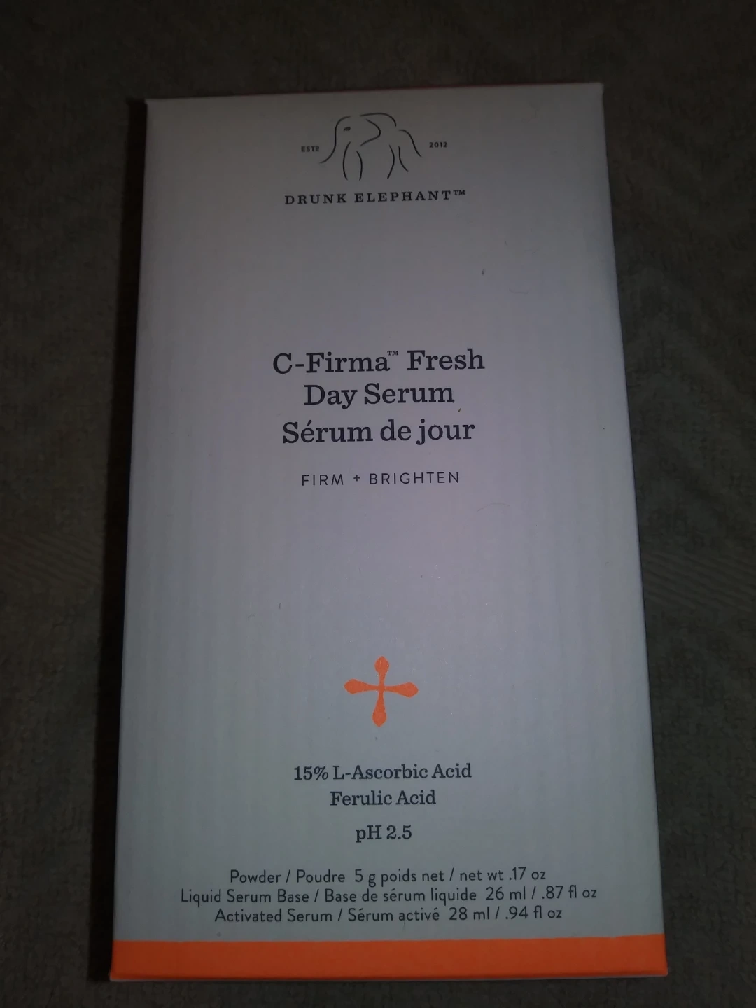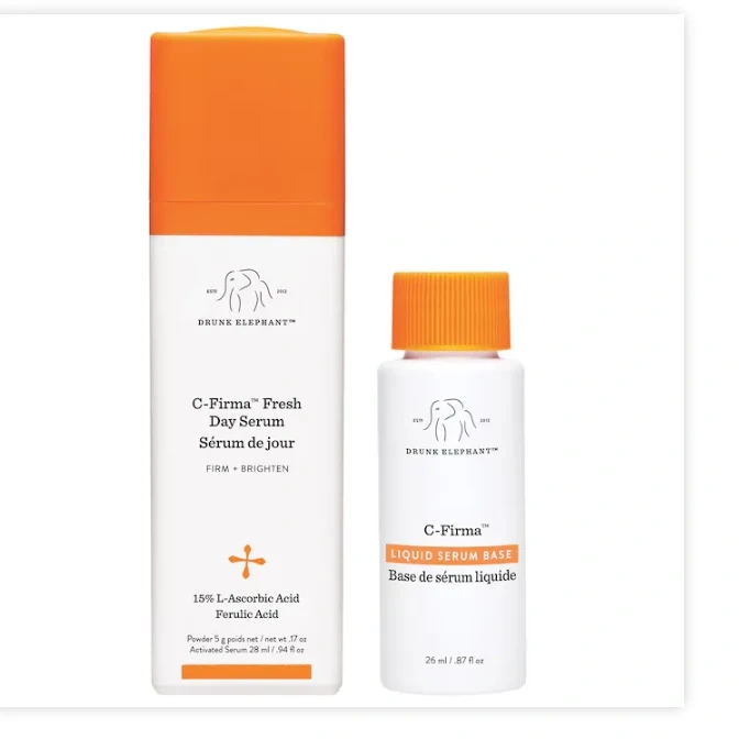New, unopened Drunk Elephant C-Firma™ Fresh Day Serum set. Includes 15% L-Ascorbic Acid Ferulic Acid serum and a liquid serum base. Firms and brightens. Full size