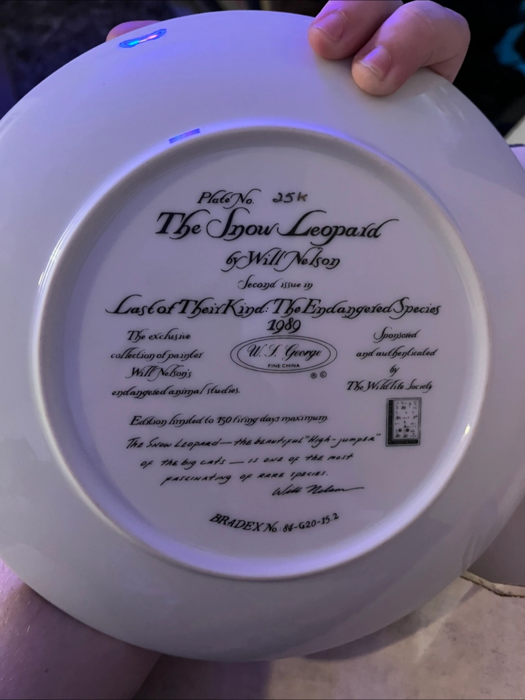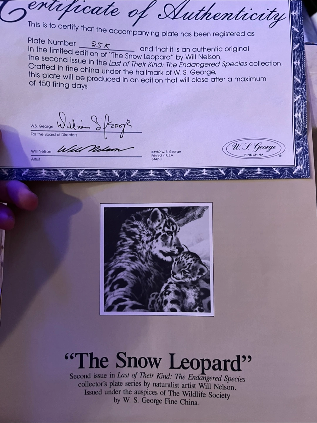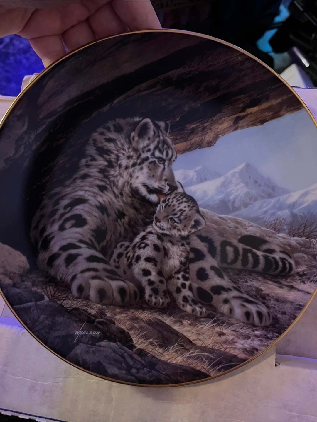 Collectible plate. Features a snow leopard and cub. Part of the Endangered Species collection. Limited edition of 150. Includes certificate of authenticity.