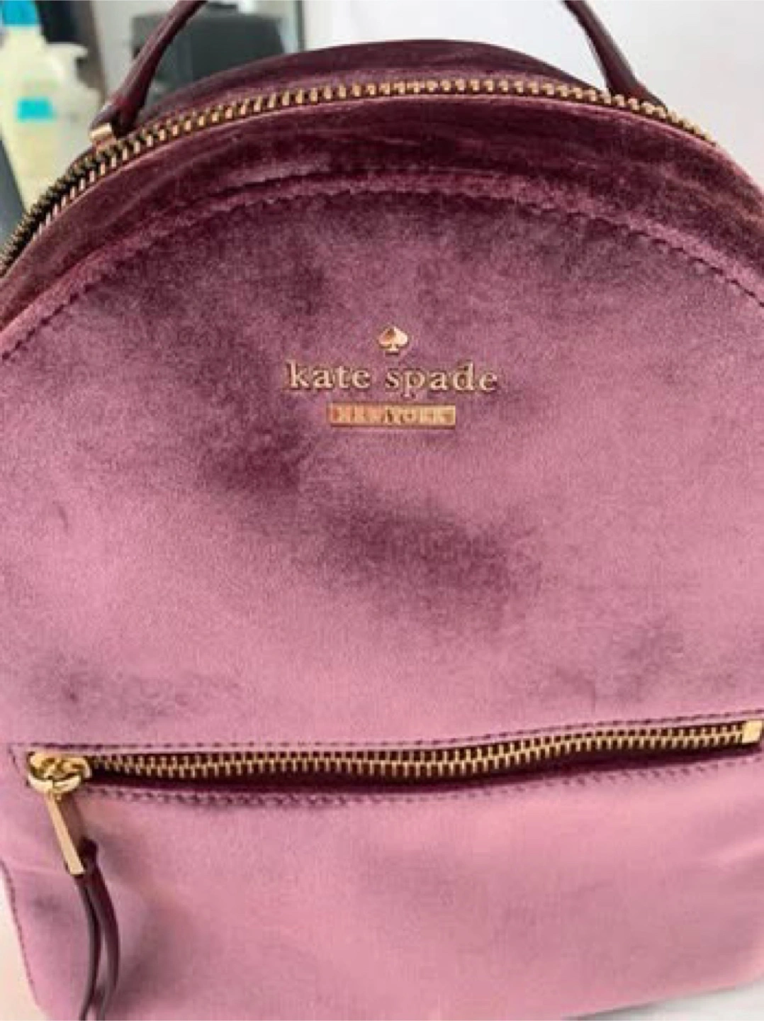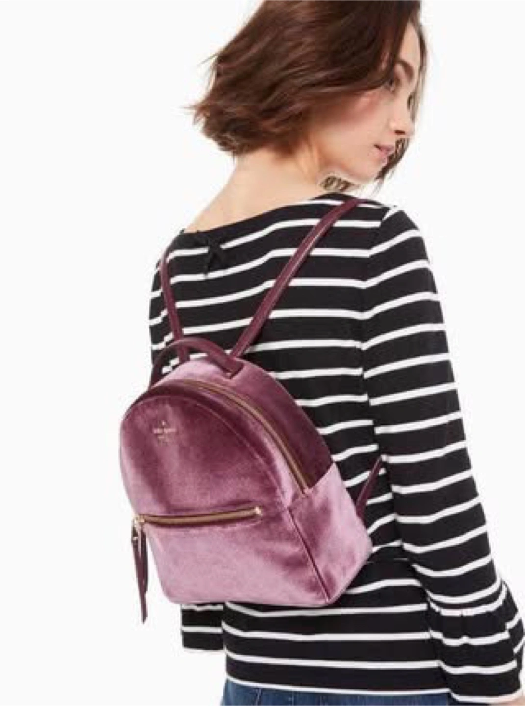 This backpacks feature the most durable technical fabrics and soft leathers,and have a ton of space. Excellent with any outfits, they're super chic. Minimal sign of used , cleaned inside and out , over all is in excellent used condition. The Details: — 9.5"h x 8.7"w x 3.9" — velvet — capital kate jacquard lining — backpack with adjustable straps and exterior zip pocket