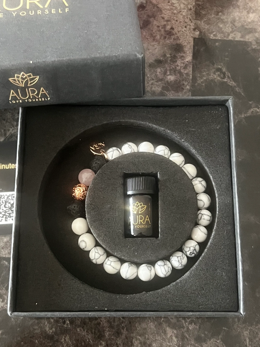 Brand new Aura diffuser bracelet. Includes small bottle of essential oil to placed on your wrist for feeling of peace and calm. Comes in a gift box in gift box. Great for gifting ideas. Comes from pet and smoke free home. Pick up around Yorkdale area or Scarborough