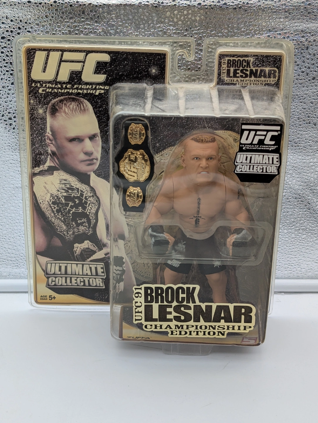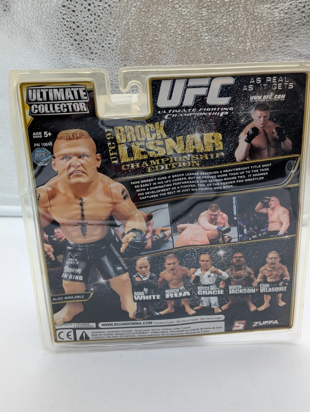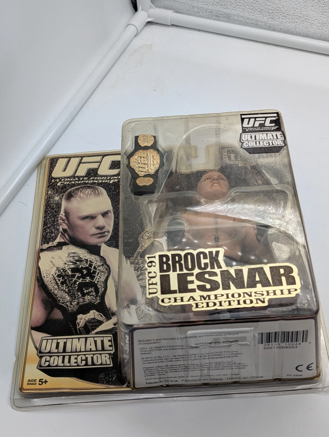 Collectible UFC Brock Lesnar figure. Ultimate Collector series. New in package. Includes championship belts.