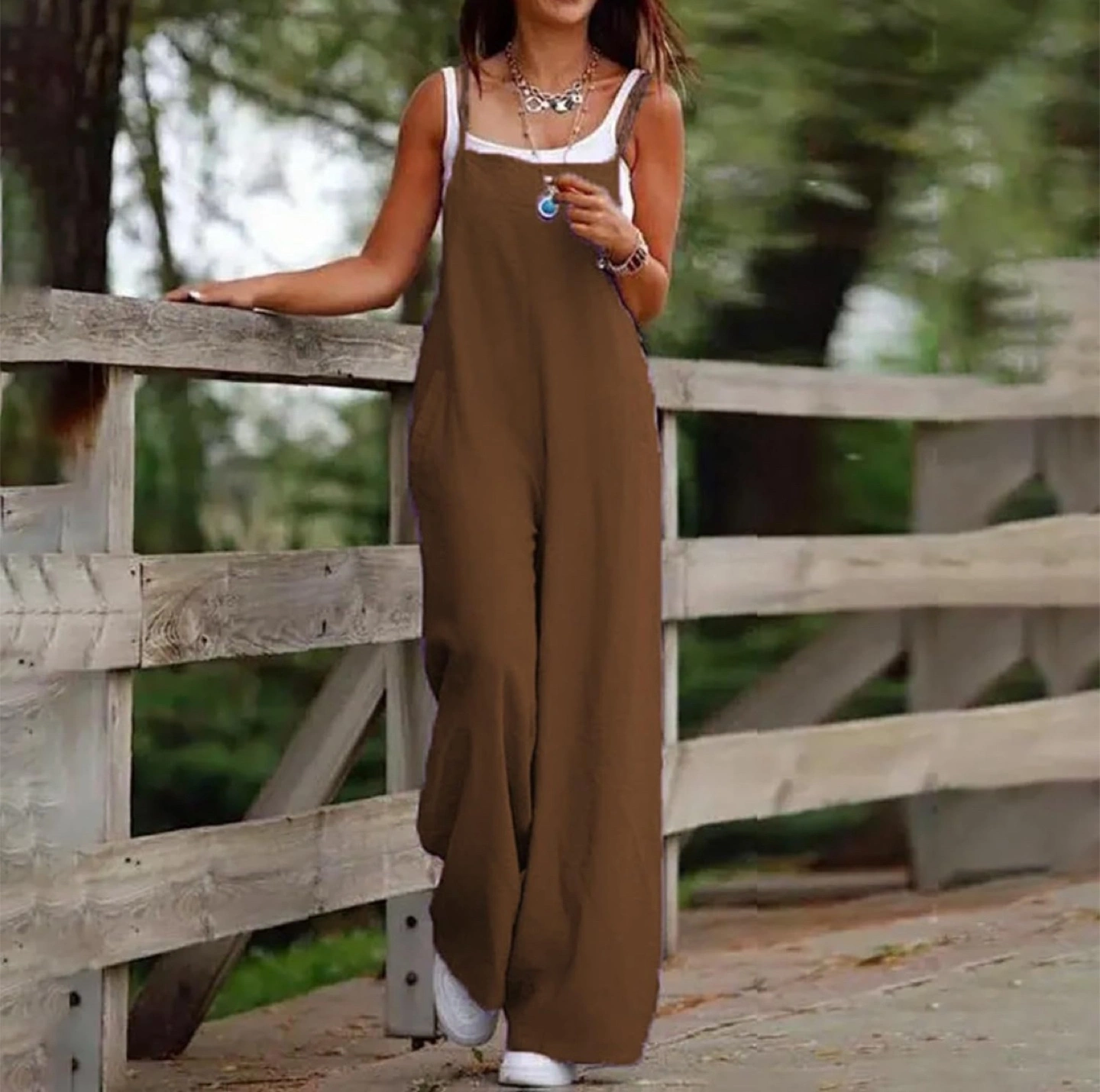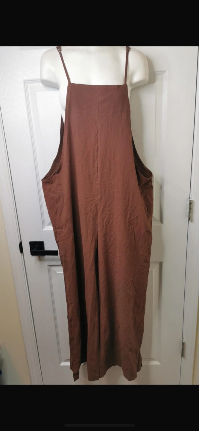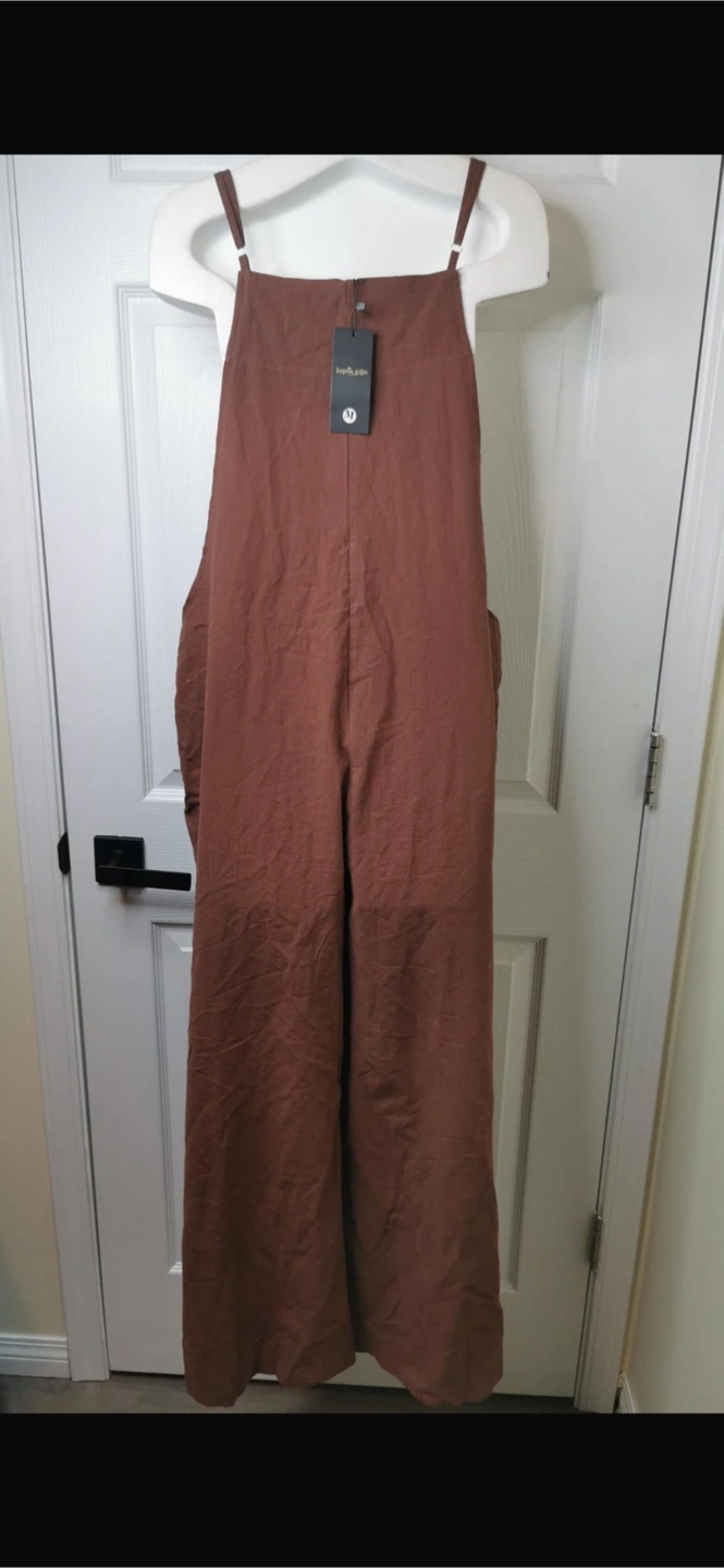 New with tag! Brown linen-look overall jumpsuit. Size medium. Features wide legs and adjustable straps. New with tags. Material: Cotton+polyester, Women Fashion Jumpsuits are made of lightweight and easy fabric, breathable, soft, lightweight, relaxed and comfortable to wear. Features: Basic wide leg, long pants, solid color, two functional pockets, casual loose fit, sleeveless make you look more slender and charming. Occasion: Suitable for casual street look, business outfit, work office style, leisure time, daily life, holiday, vacation and so on.
