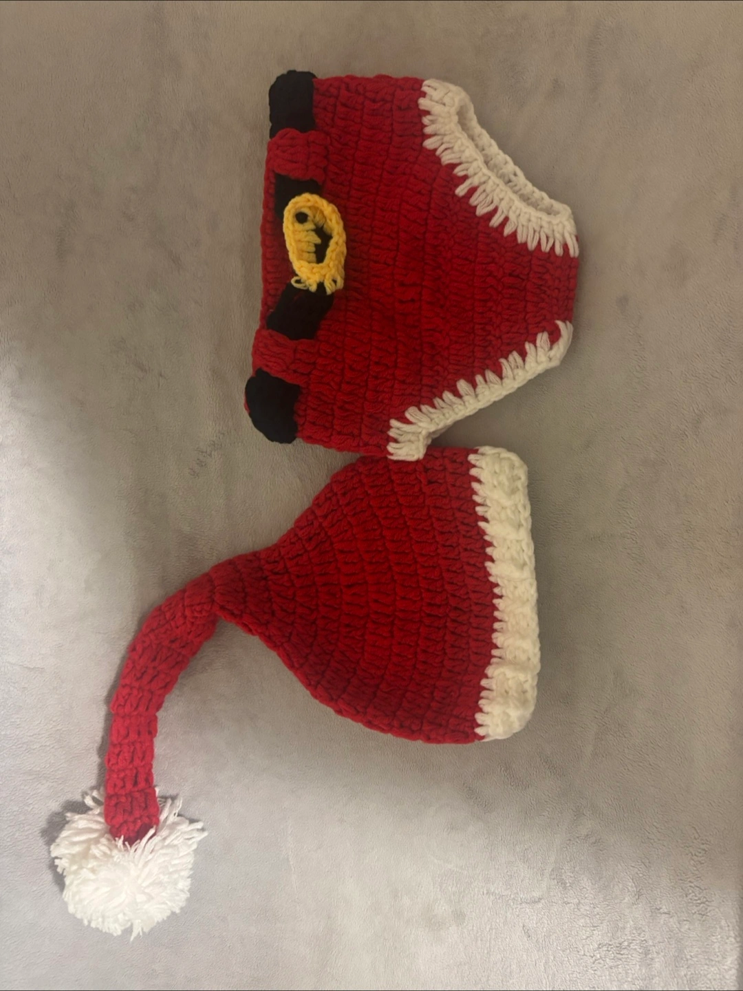 Adorable crocheted Mickey Mouse suit. Includes pants and hat. Perfect for newborn photoshoots. Red and white colour scheme. Soft and cozy material. Never used, had a professional shoot instead. Paid $15.