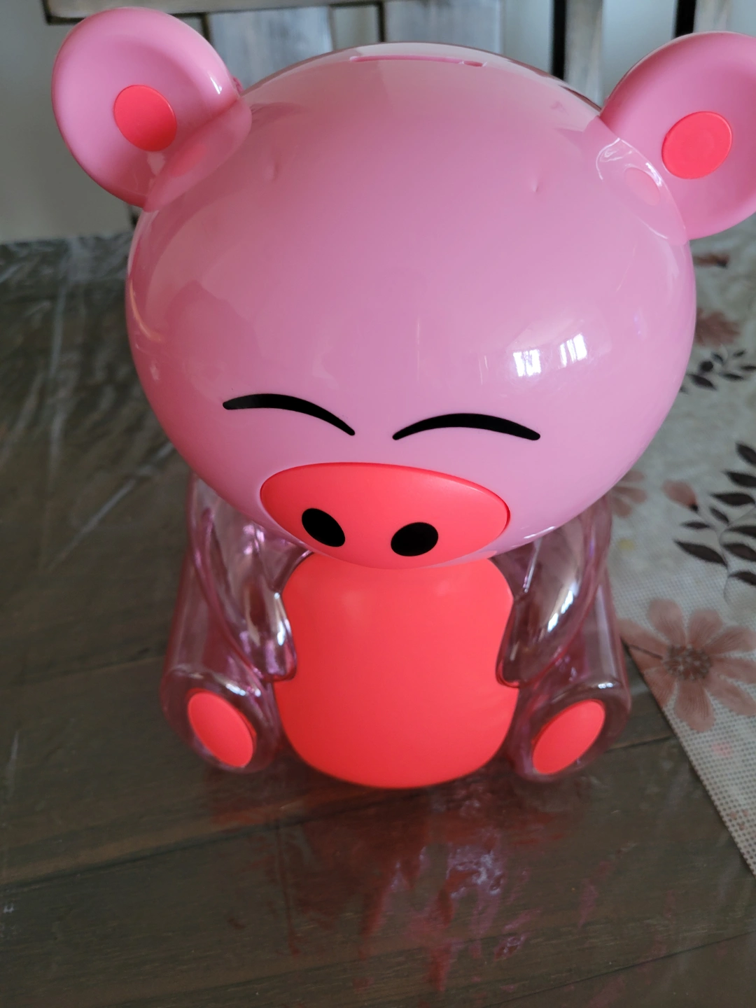 Cute Pink piggy and White Panda Bear Bank. Pink and white plastic. Features a coin slot on top and carrying handles. Perfect for children's savings. Brand: Aurlik Quantity: 3 Each $ 10