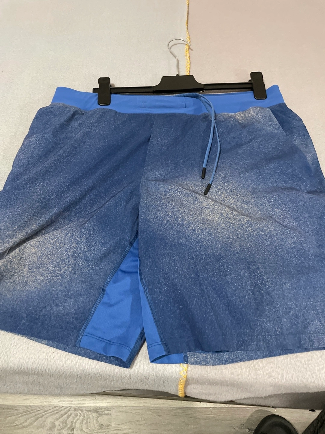 Men's athletic shorts. Blue and black colour. Drawstring waist. Two pockets. Inner liner. Excellent condition.
