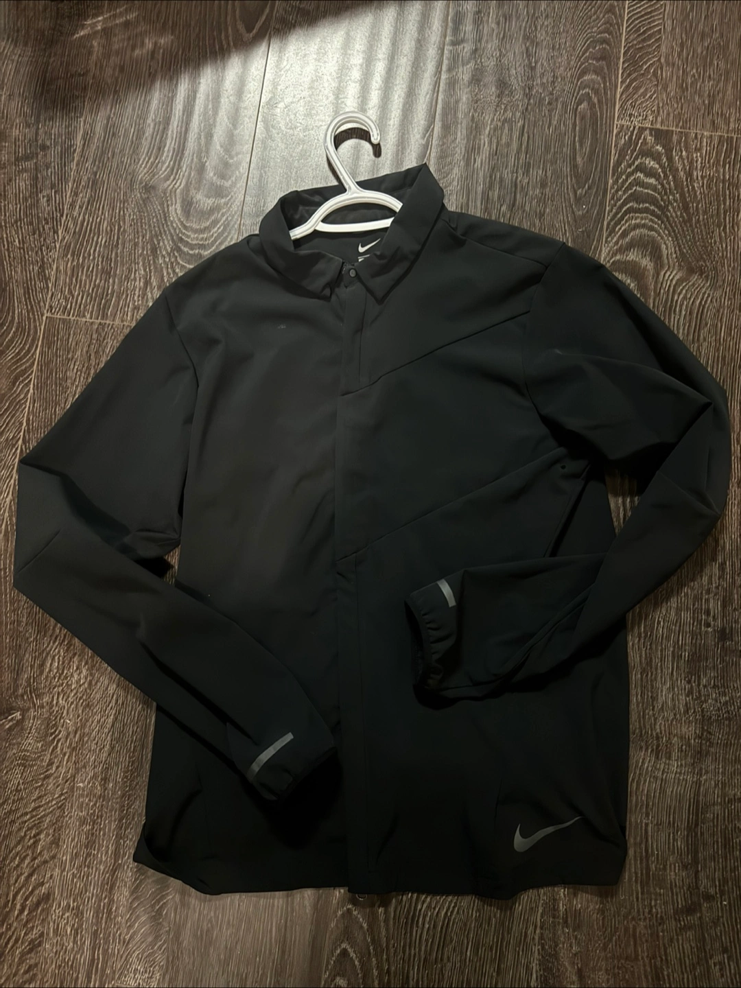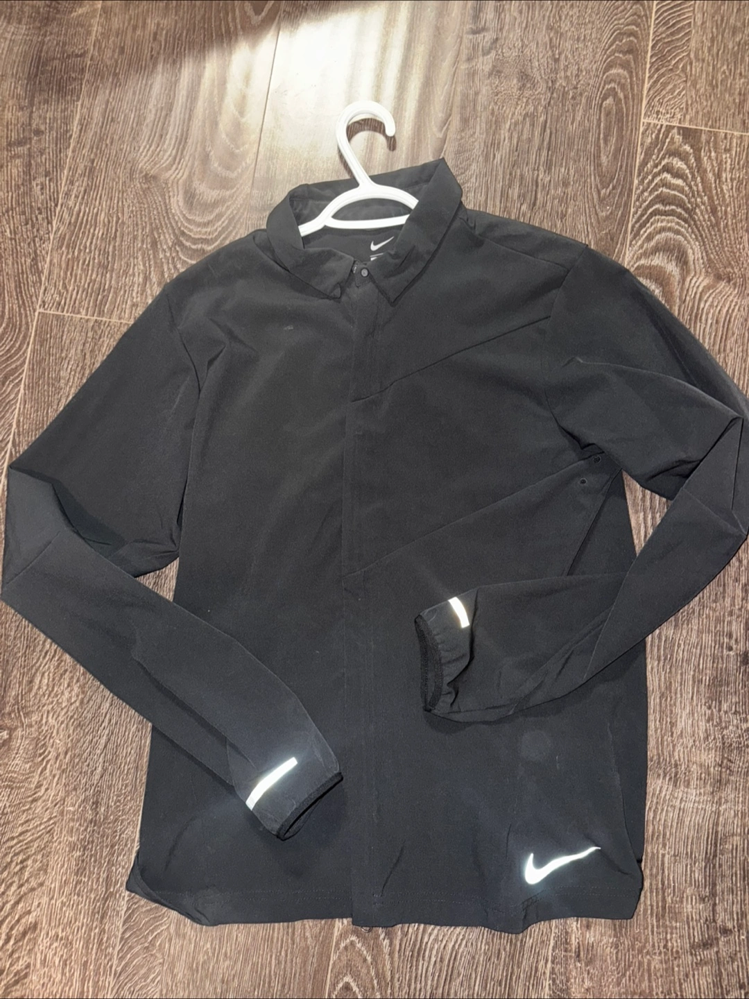 Men's Nike running jacket. Black colour. Long sleeves. Lightweight material. Button closure. Great for workouts. Worn like 3 times $40