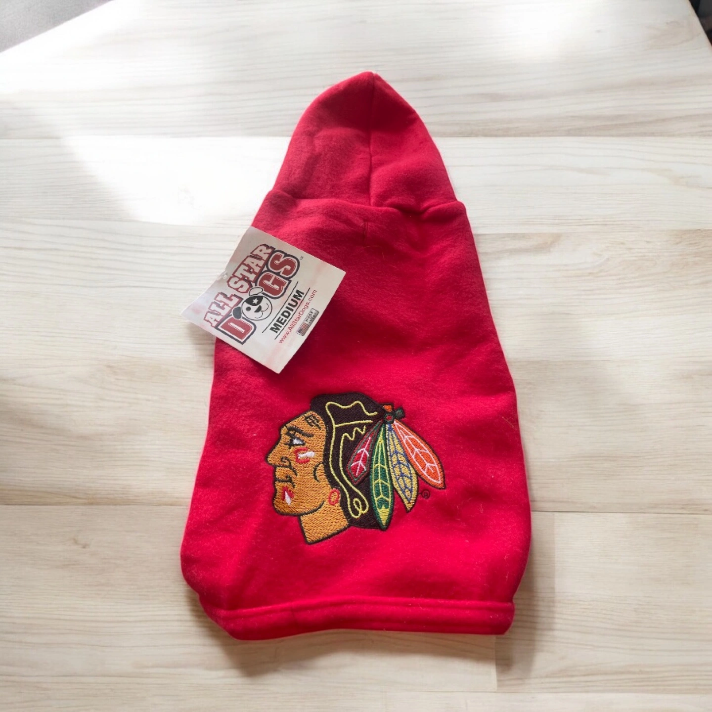 Red Chicago Blackhawks dog hoodie. Size medium. All Star Dogs brand. New with tags. Embroidered logo. Perfect for game day!