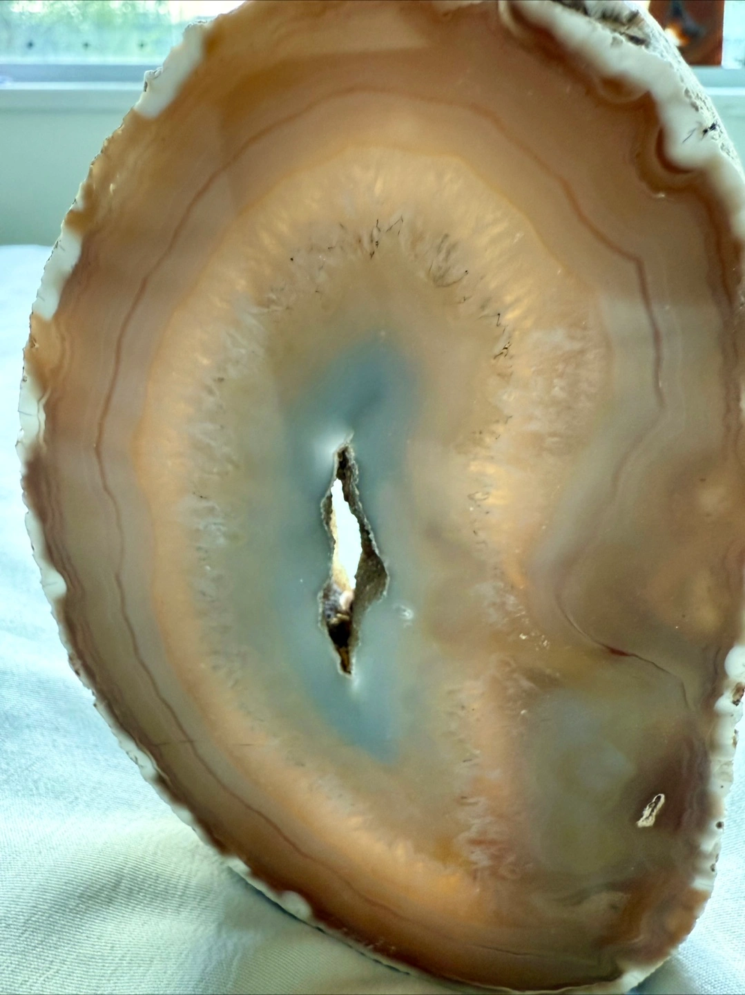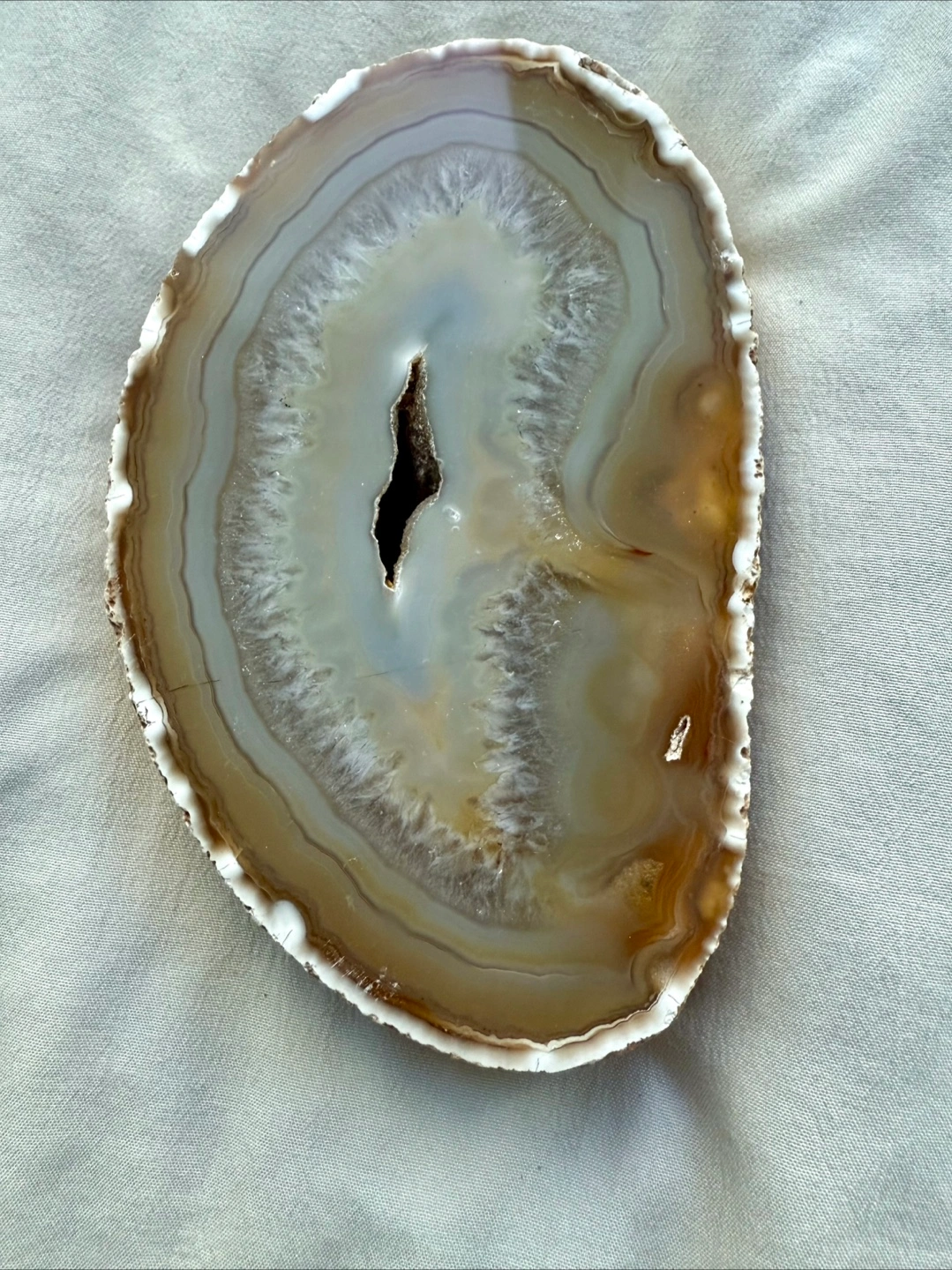 Beautiful agate slice. Unique natural colours and patterns. Perfect for display or crafting. Shows natural variations.