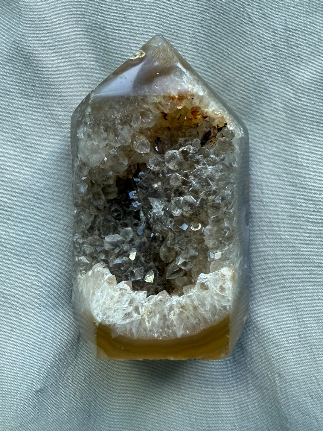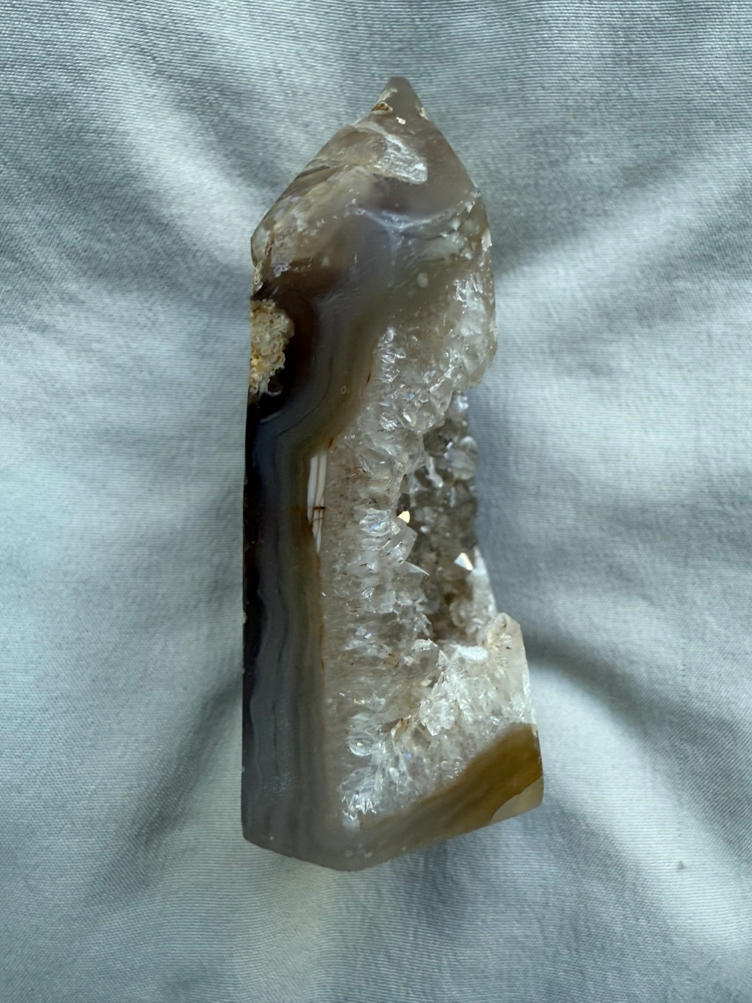 Beautiful grey agate geode point. Unique crystal formation. Perfect for any crystal collection or energy work.