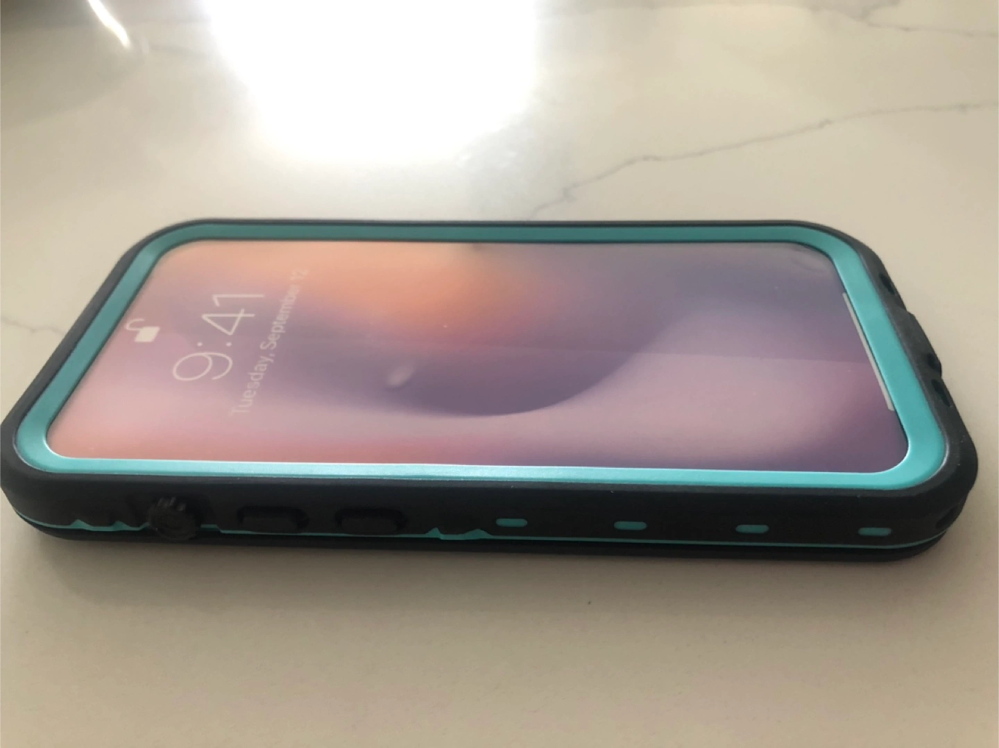 Durable, waterproof phone case. Teal and black accents. Designed for iPhone 13. Provides 360-degree protection. Covers front and back of phone. Brand new Asking $5 Pick up in Pickering (Altona & Kingston Rd).