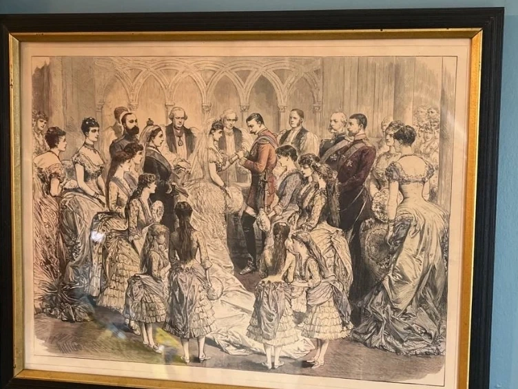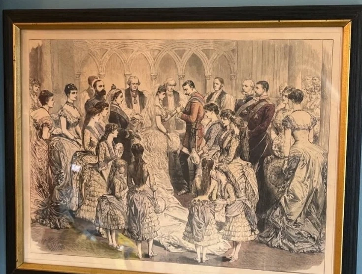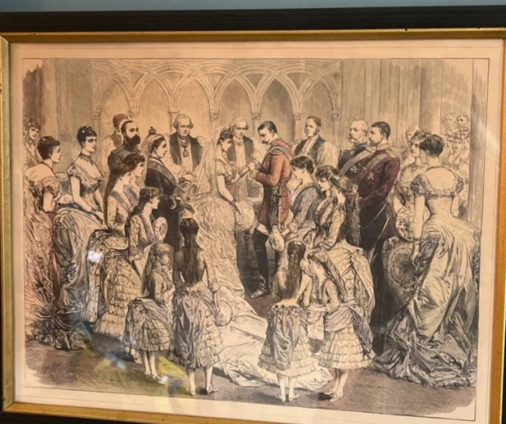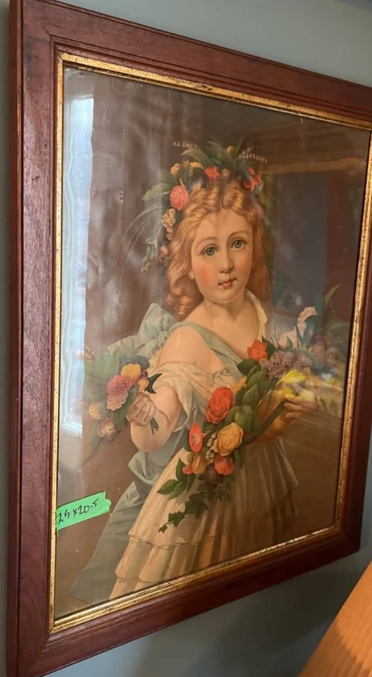 Three framed Vintage /Antique Prints Buy All for $300 or Buy Individually as Priced on each Print PRINT #1 1860s or 1870s vintage print, in the original period frame, under glass. This is sweet, a small child with her straw hat filled with flowers! The frame measures 25 1/2" x 20 1/2" ASKING $340.00 Now Reduced and Firm $180.00 This is in Amazing Bright and Unfaded Condition, a few cracks small tears otherwise not to shabby. FRAMED IS VERY OLD PRINT #2 Victorian era antique color litho print Wedding, 1885, of Princess Beatrice of England (1857-1944), with Prince Henry Maurice von Battenberg (1858-1896), historical Illustration Measurements:15.5 x 19.5 ASKING $240.00 now Reduced and Firm $ 150.00 PRINT #3 Paris Street; Rainy Day Vintage / Antique Print This is probably the most known work of French artist Gustave Caillebotte (1848–1894). In this painting, we see a number of people strolling across the Place de Dublin, then known as the Carrefour de Moscou, at an intersection to the east of the Gare Saint Lazare in the north of Paris. All of these individuals are not interacting with each other: nobody’s talking to anybody, and everyone is a wandering atom, a nameless hero of the city universe. MEASUREMENTS ARE: 9.5 x 15.5 ASKING $140.00 Now Reduced and Firm $100.00 According to art historians, the light indicates that the painting is set on a wintry afternoon. We see a couple with an umbrella, they seem to be well off. She wears a hat, veil, diamond earrings, a demure brown dress, and a very fashionable fur-lined coat. He wears a mustache, topcoat, frock coat, top hat, bow tie, starched white shirt, buttoned waistcoat, and an open long coat with the collar turned up. In the background, we see some other figures: a maid in a doorway, and a decorator carrying a ladder, cut off by an umbrella above him. Caillebotte’s interest in photography is evident here. He reproduces the effect of a camera lens and the points at the center of the image seem to bulge. He also recreates the focusing effect of the camera in the way that it sharpens only certain subjects of an image. The foreground is in focus, while the background becomes more and more blurry. The painting’s highly crafted surface, rigorous perspective, and grand scale differed from what Impressionists were presenting at their exhibitions – it was much more pleasing for the Parisian audiences accustomed to the Academic aesthetic of the official Salon. But at the same time, the asymmetrical composition and unusually cropped forms give us the feeling of something new, more modern. For these reasons, the painting dominated the celebrated Impressionist exhibition of 1877, largely organized by the artist himself. Accepting Cash or Etransfer Only Please Please TAKE time to view my other Ads for more China Sets and Collectibles