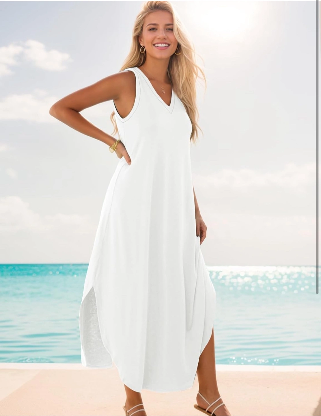 New with tag! Retails for $38 【Material】35% Cotton, 65% Polyester. Women's split maxi dress is made of high quality fabric, lightweight, breathable and skin-friendly, super soft and comfortable to wear all day. 【Features】V neck, Sleeveless, Side split, Casual Long beach dress, Maxi dress with Pockets, Loose fit flowy dress. It is such a flattering cozy dress and can be easily dressed up or down. 【Occasion】This summer maxi casual dress is great for vacation,home dress,daily wear, beach, holiday, night dress, outdoor, wedding, honeymoon, anniversary, casual, office, date, party. Everyone needs a dress like this for every day hang around the house and it's nice and cozy enough to wear out. 【Match】: The summer dress is in simple casual style,you can match with your pumps,heels, Flowy white maxi dress. Features a V-neck and sleeveless design. Side slits add style. Perfect for summer. Comfortable and lightweight material.
