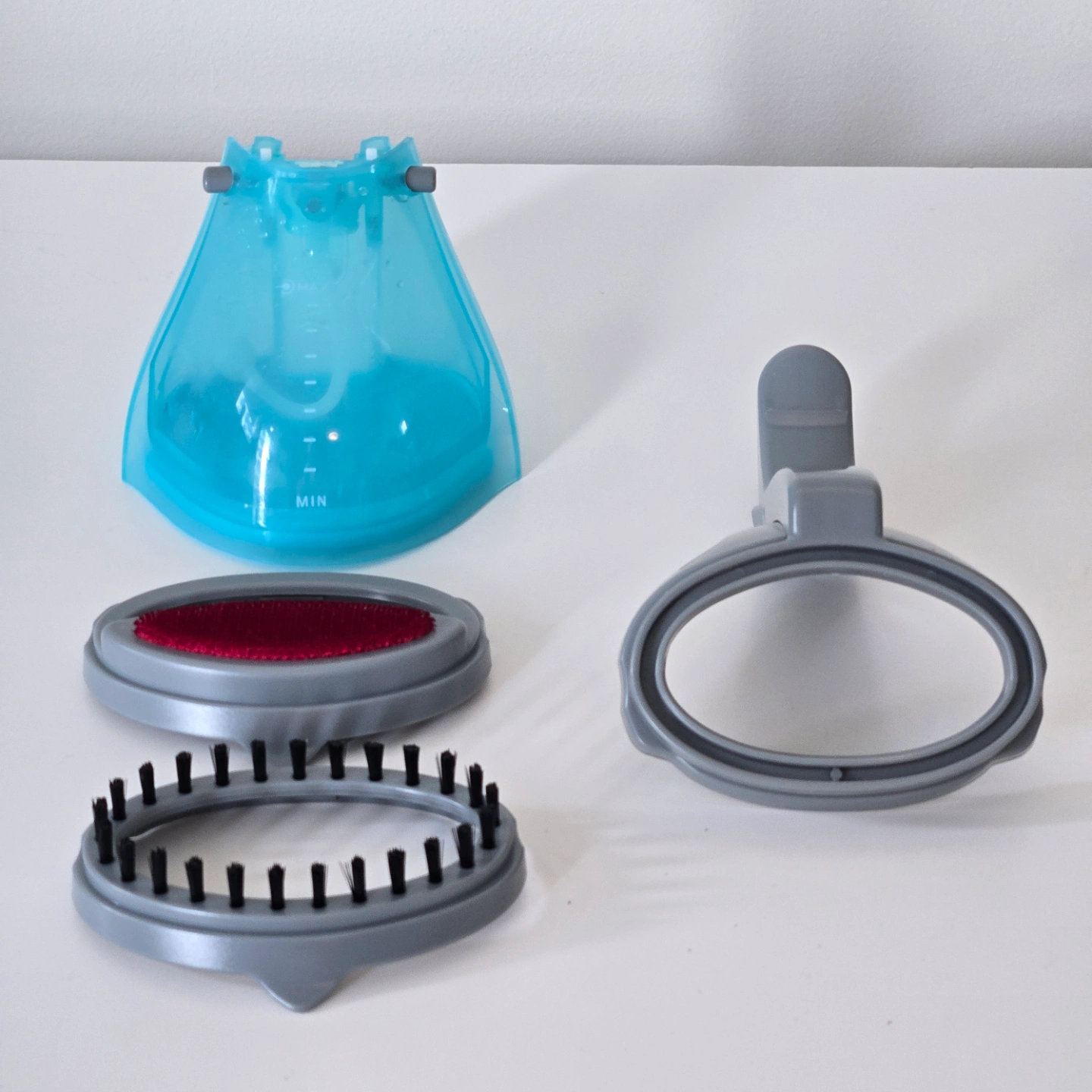 • Attachments included (never used): ▪ Lint brush ▪ Soft brush ▪ Creaser • Small water container: no cracks • It does not include the steamer