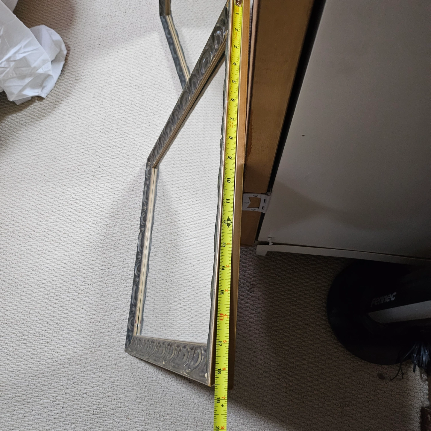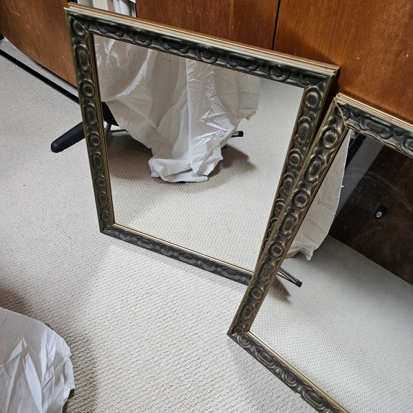 Two matching mirrors. Ornate gold frames. Some damage to corners. Approximately 24 inches tall.